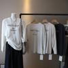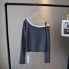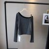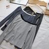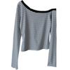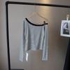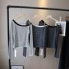 [Bi Zheng] Outono 2025 Novo Estilo Coreano Ombro Único Listrado Emagrecedor Versátil Camiseta Curta Manga Longa Feminina 4735