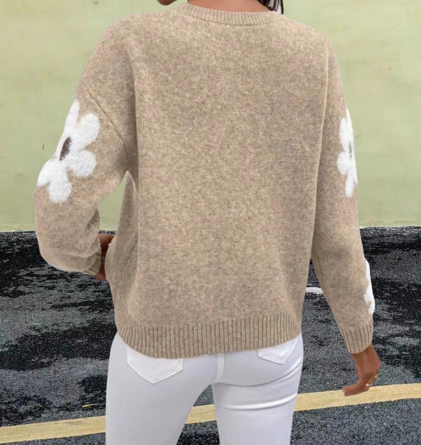 Pulôver de malha jacquard de flor elegante da moda quente de outono e inverno europeu e americano 2024 roupa feminina transfronteiriça da Amazon