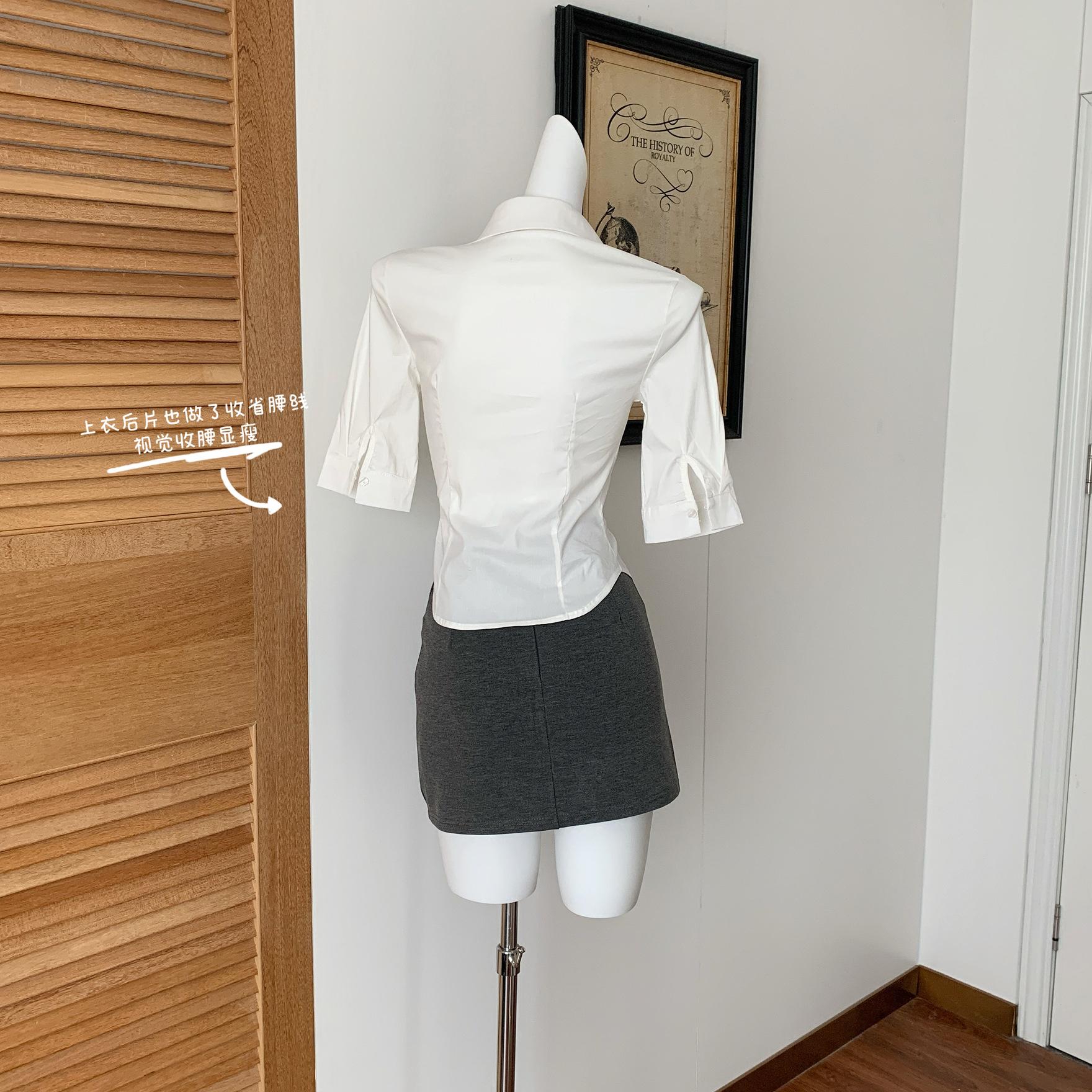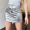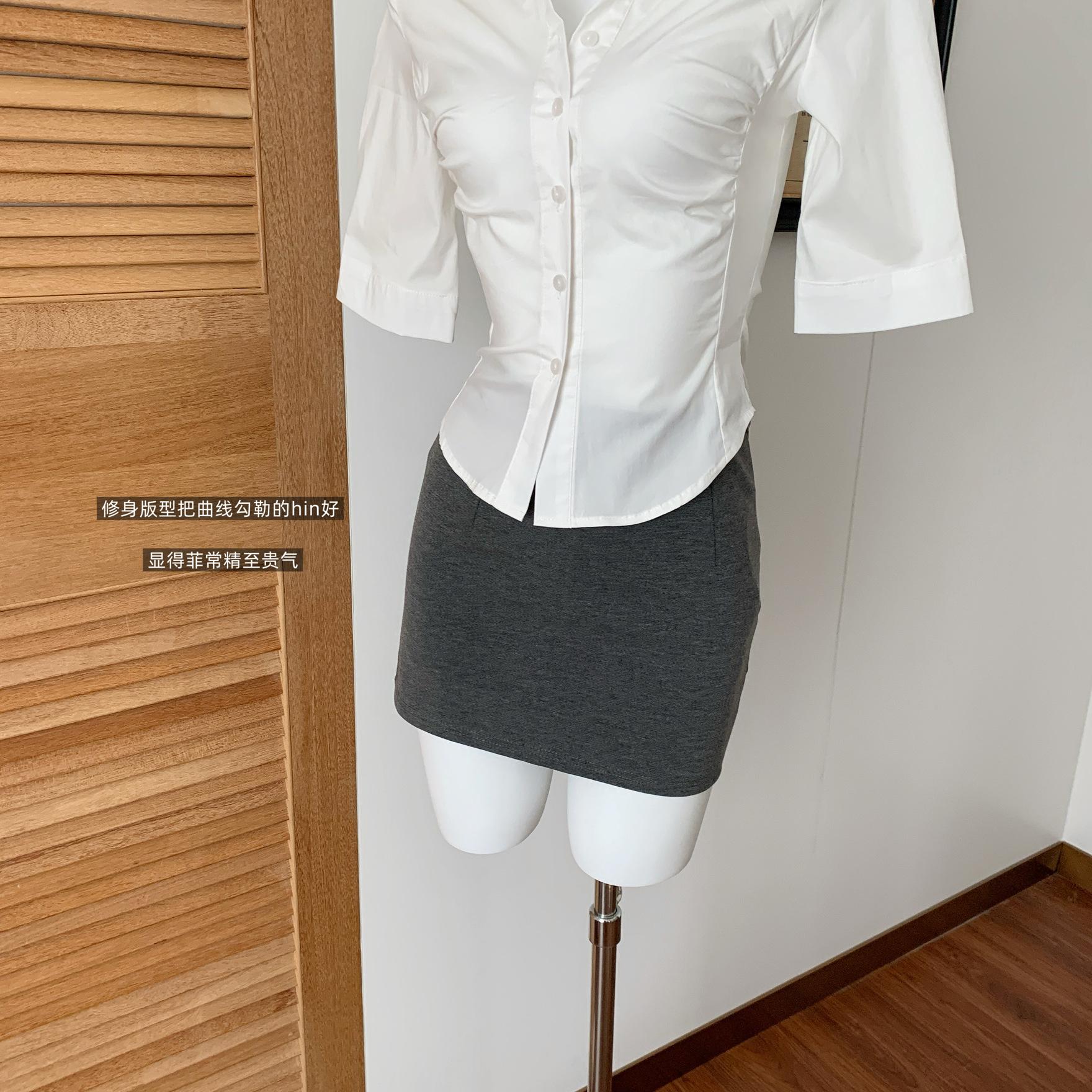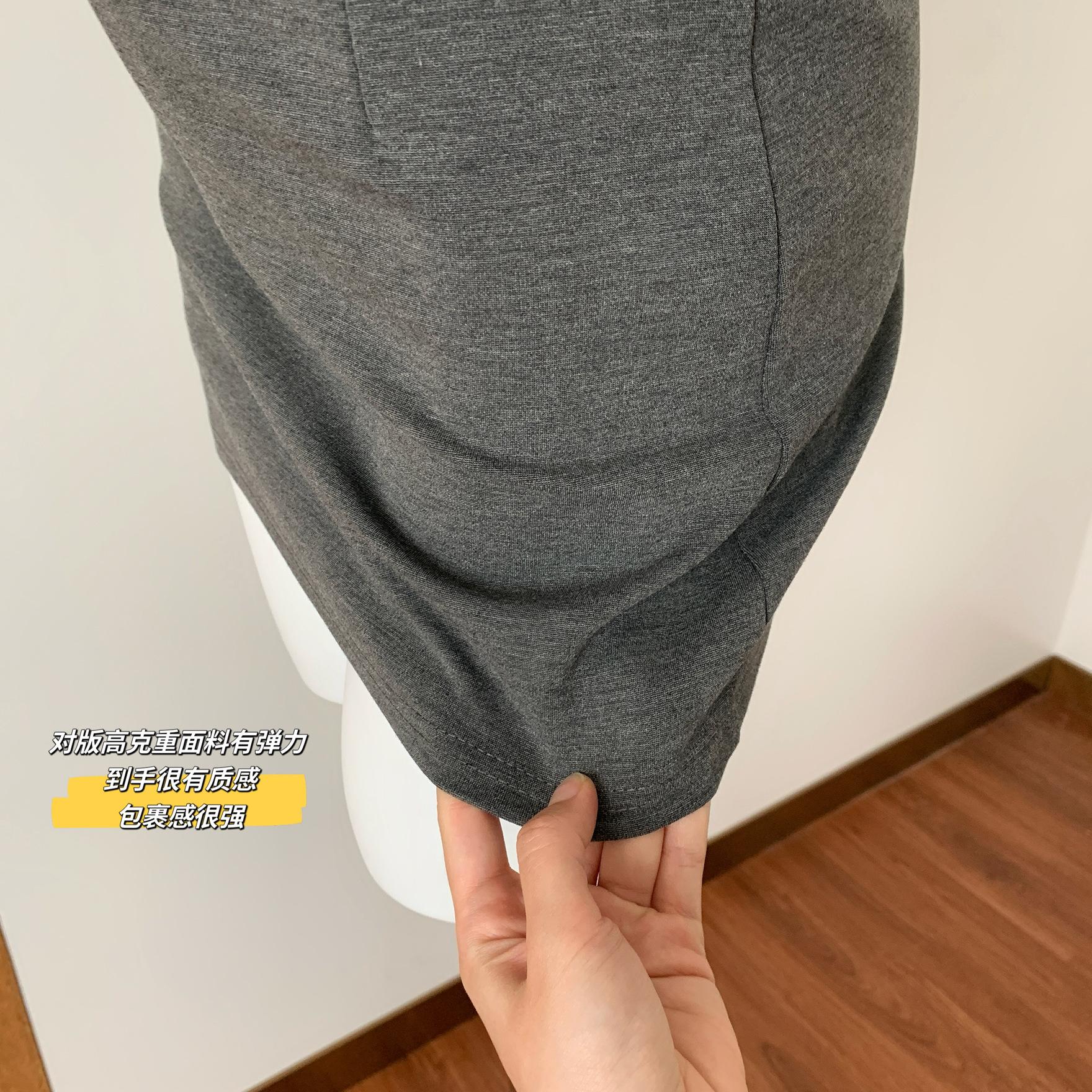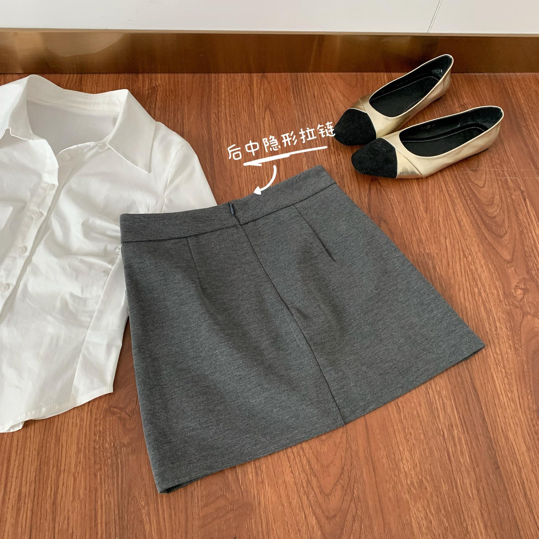 Saia de Alfaiataria Cinza de Cintura Alta para Mulheres, Saia Curta Justa Elástica que Abraça os Quadris de Cintura Alta, Saia em A