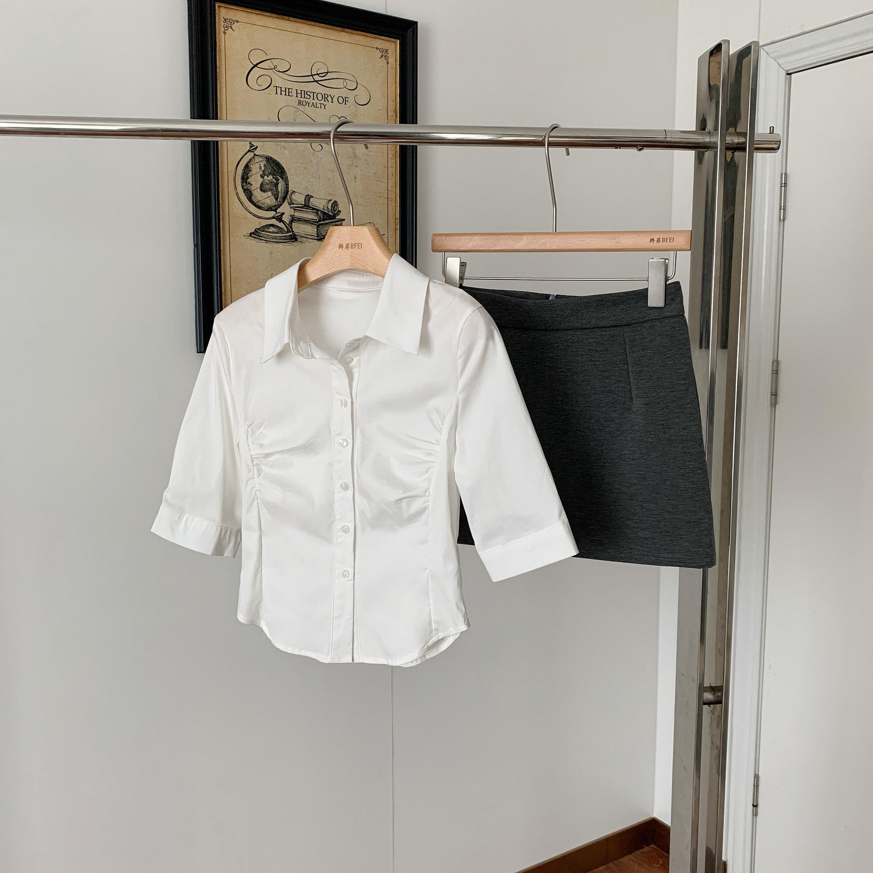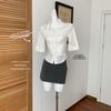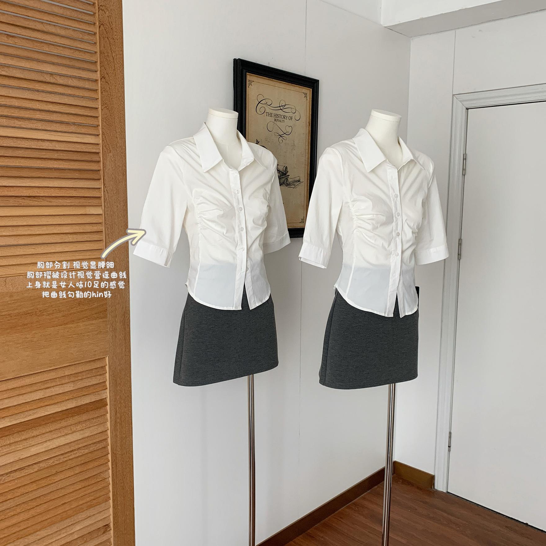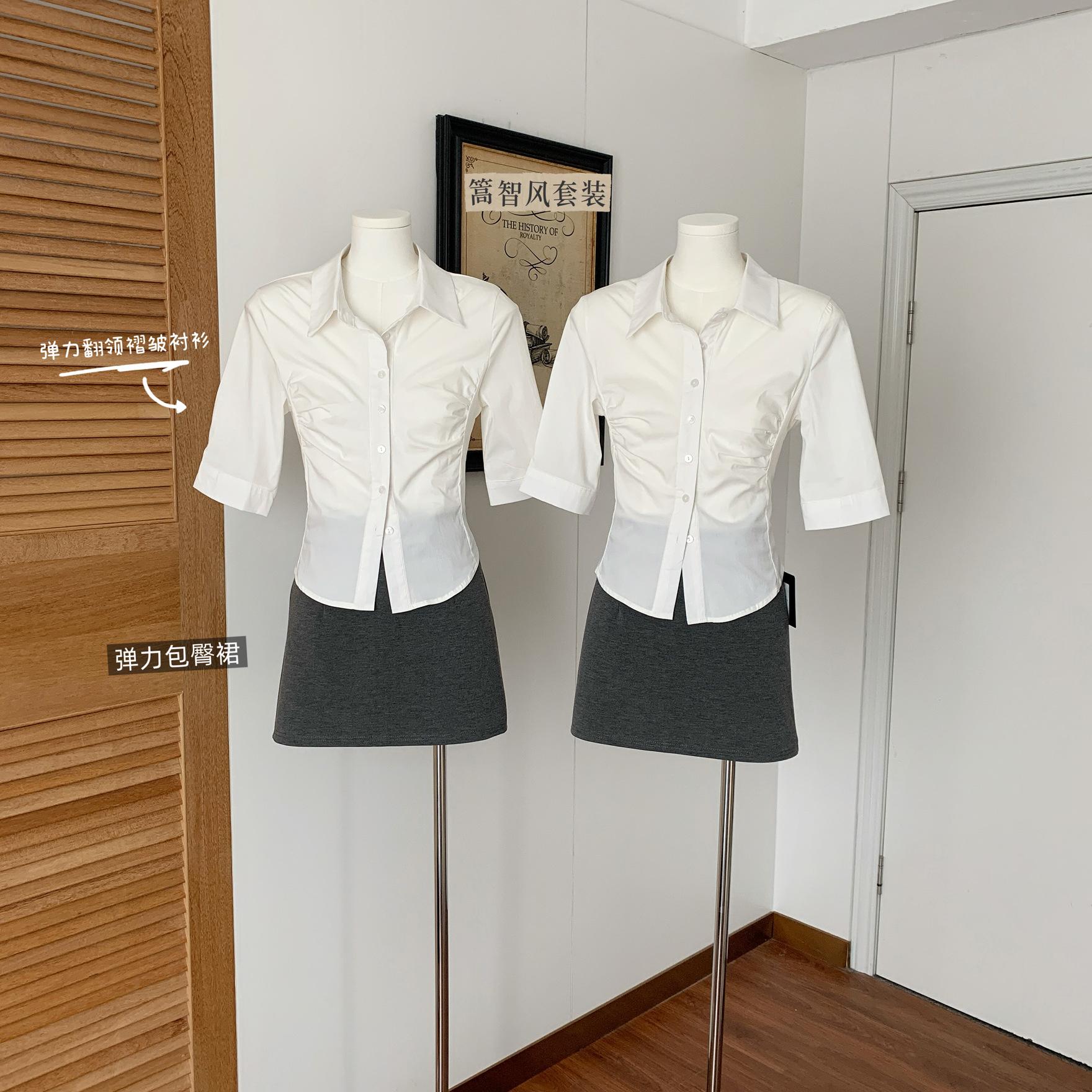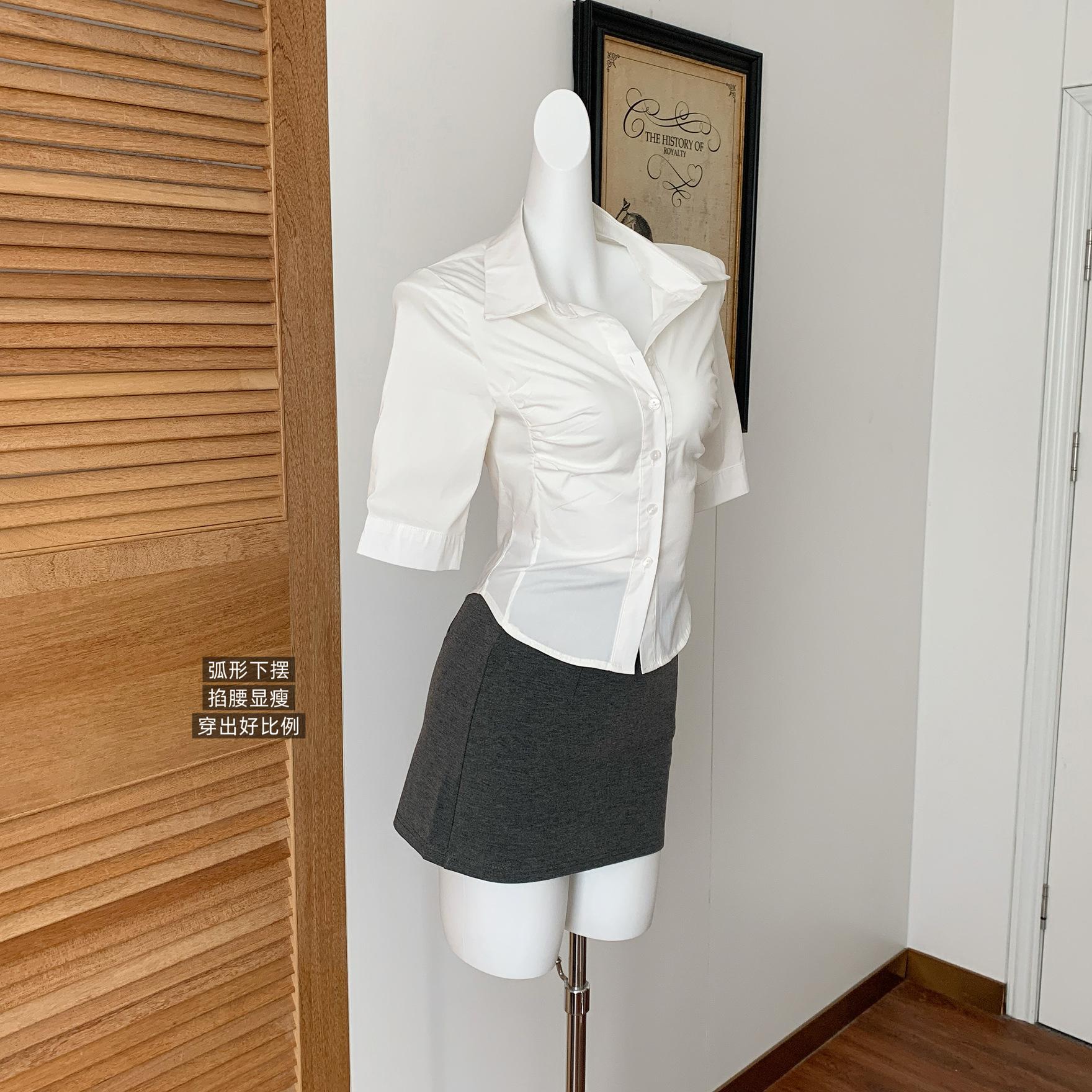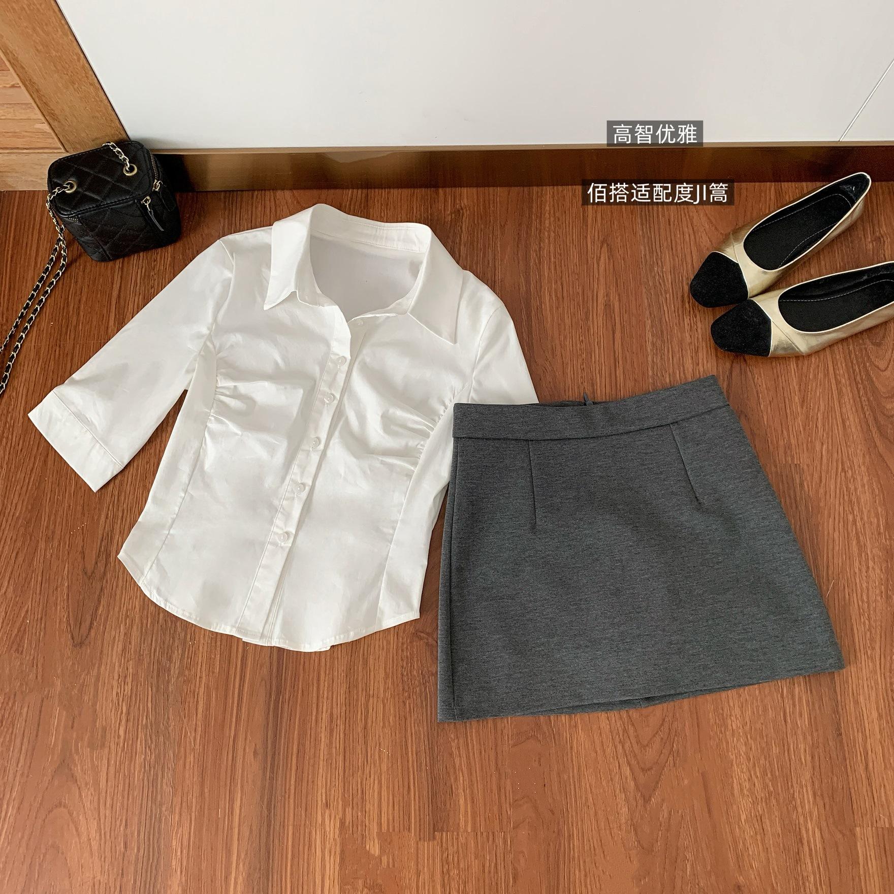 Saia de Alfaiataria Cinza de Cintura Alta para Mulheres, Saia Curta Justa Elástica que Abraça os Quadris de Cintura Alta, Saia em A