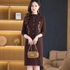 Outono e inverno usar suspensório engrossado redutor de idade renda suave conjunto completo de três peças saia midi colete com cardigã estilo tricô