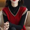 Novo Outono/Inverno Cashmere Camada Gola Redonda Colete Feminino Estilo Solto Preguiçoso Colete de Tricô Colete Regata de Tricô