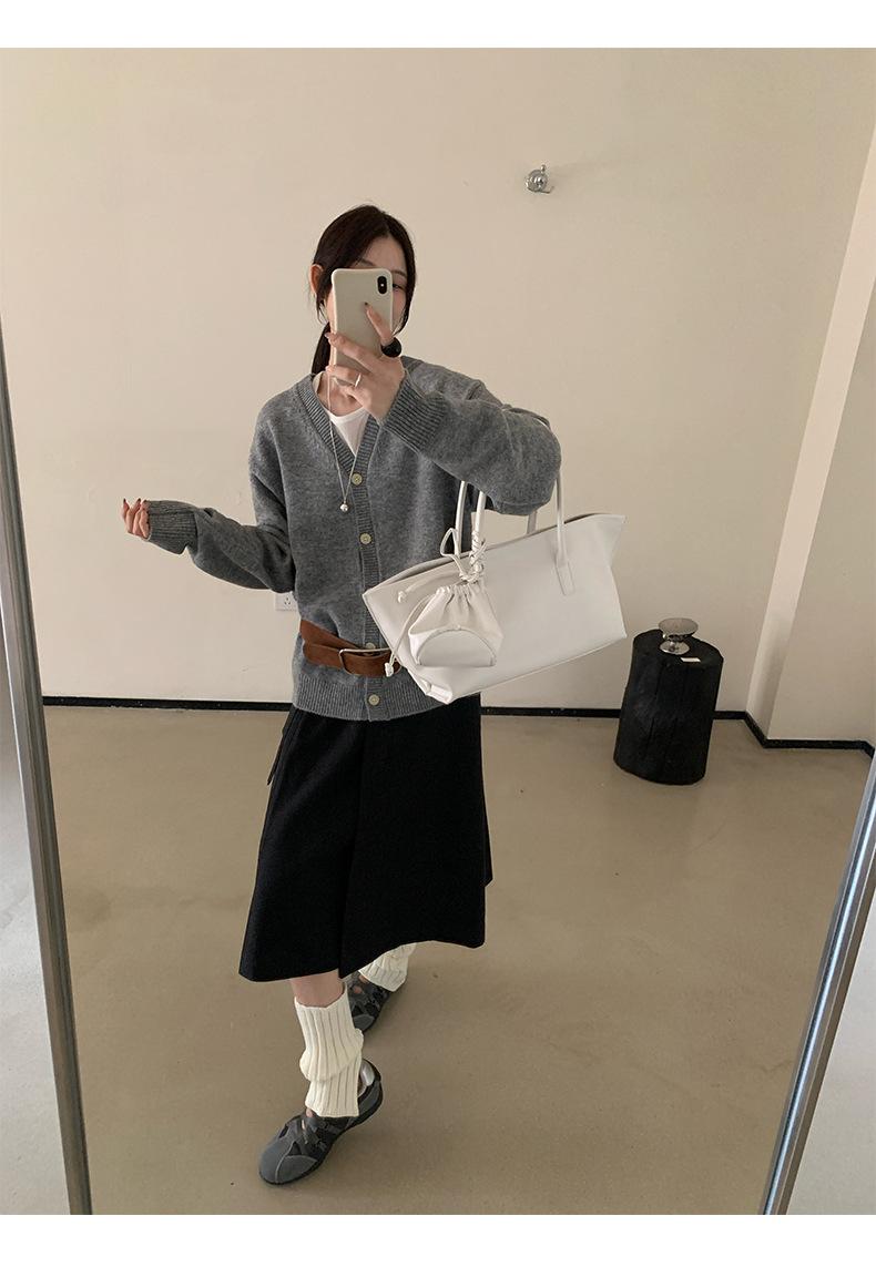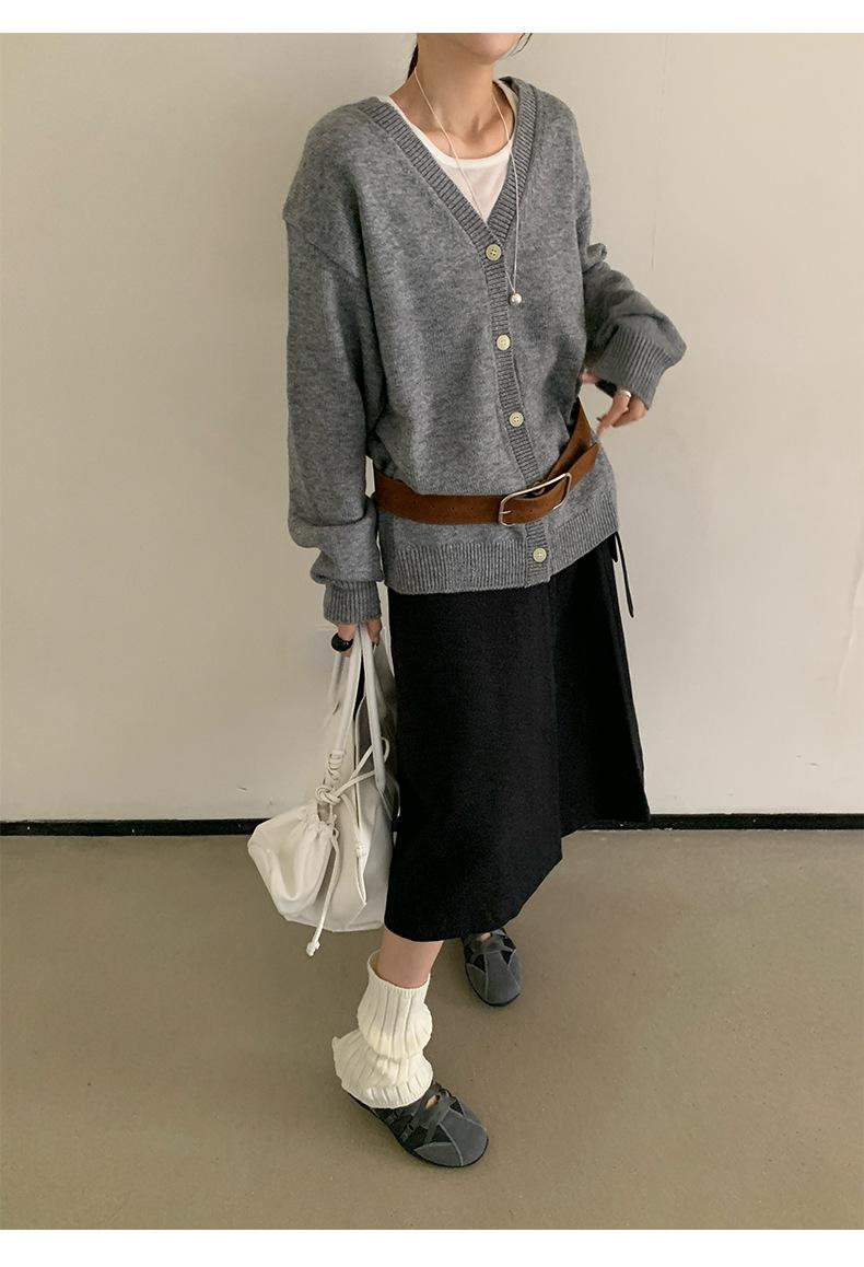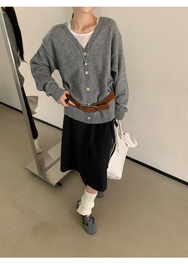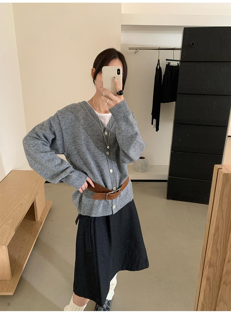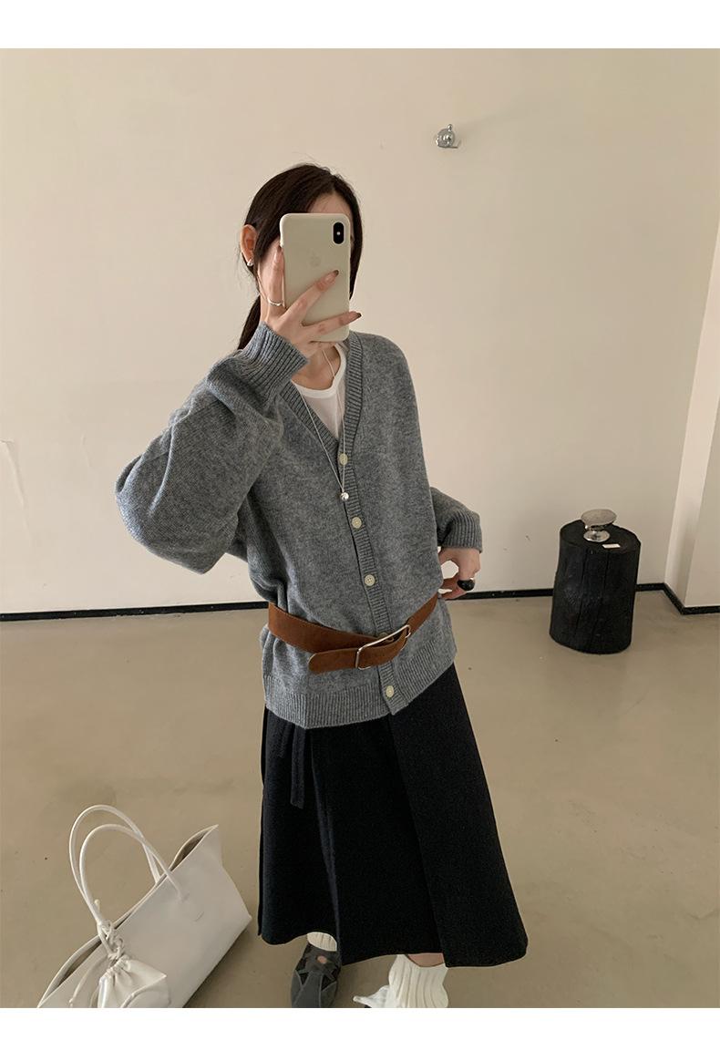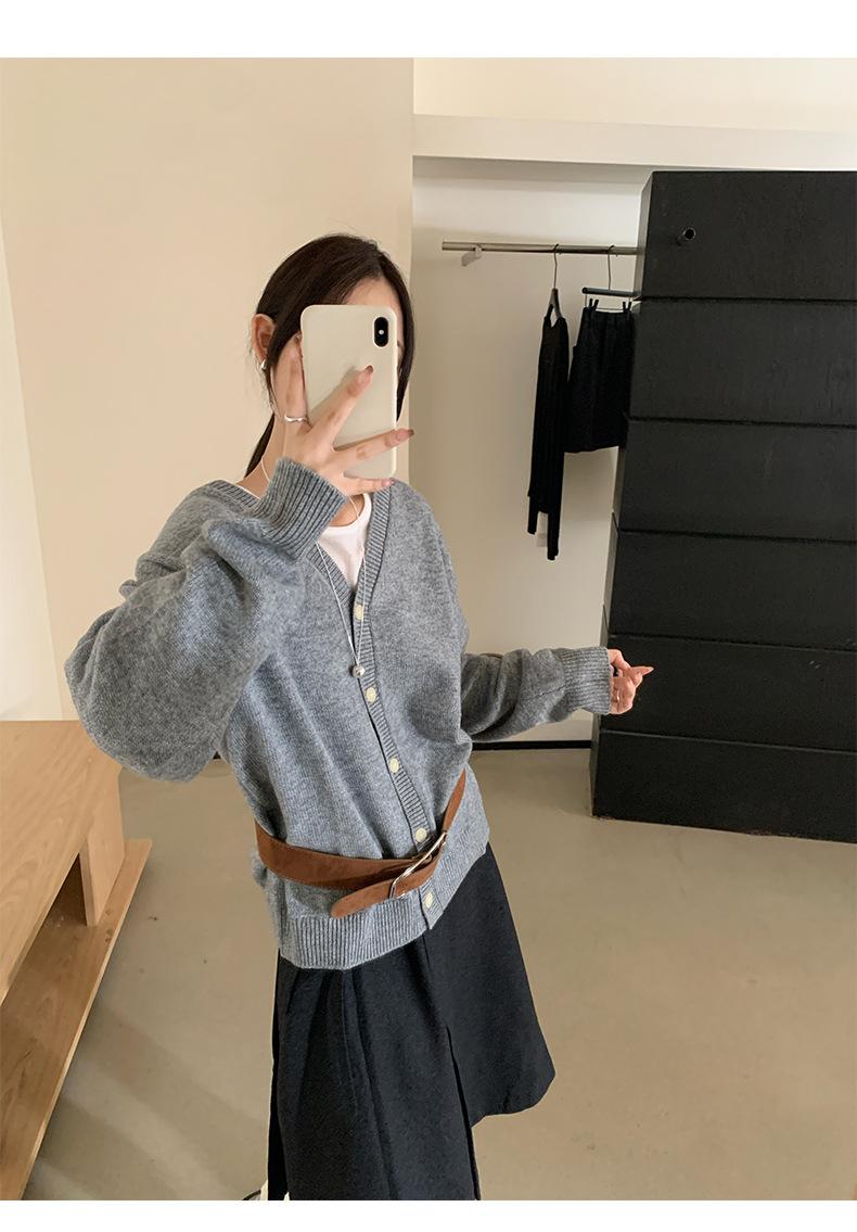 Cardigan Casaco Feminino Tricô Lã Temperamento Suave Decote V Emagrecimento Outono Novo Coreano Dongdaemun 2025