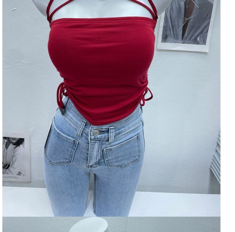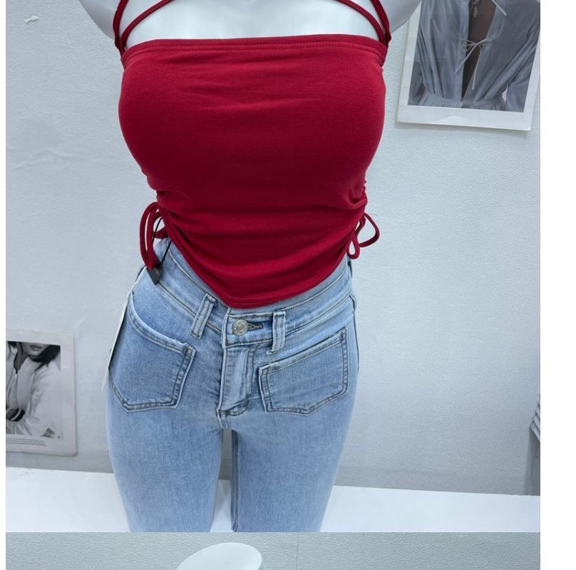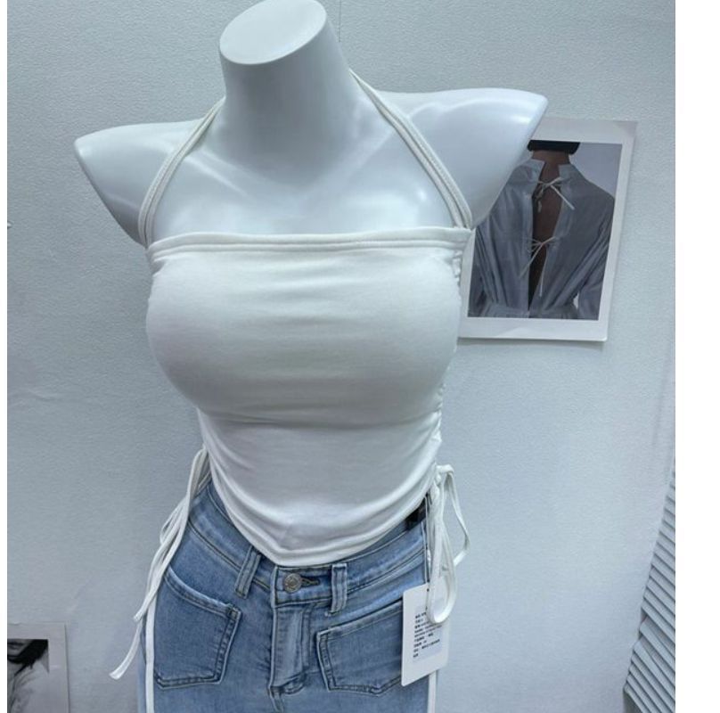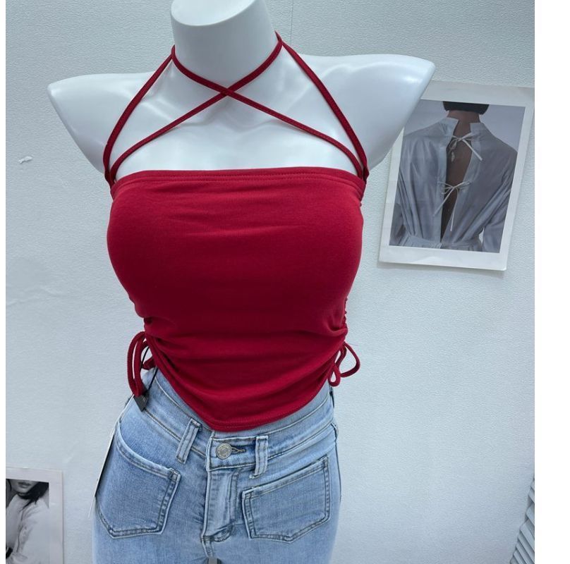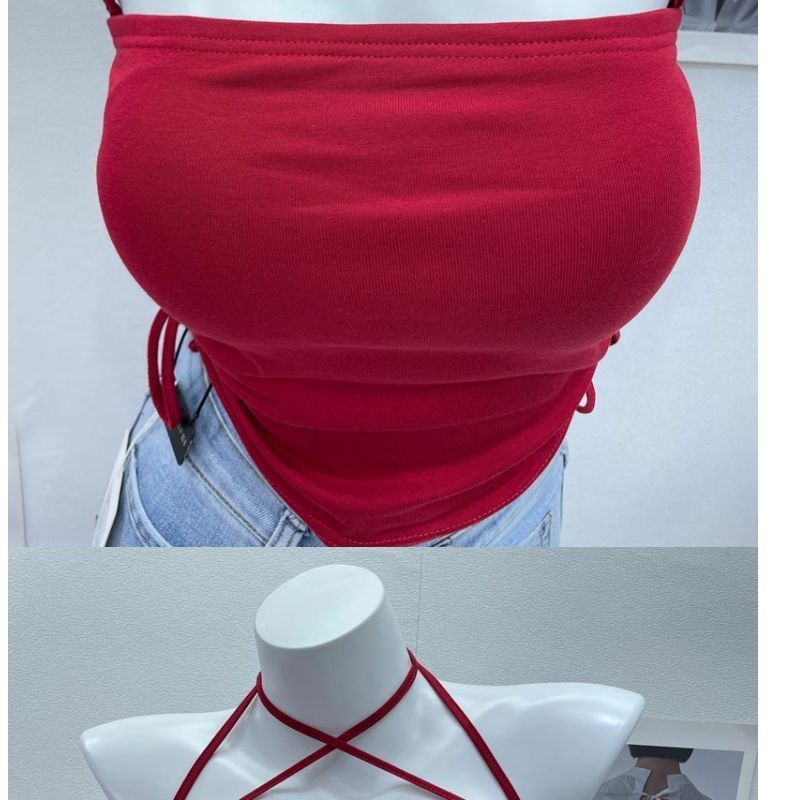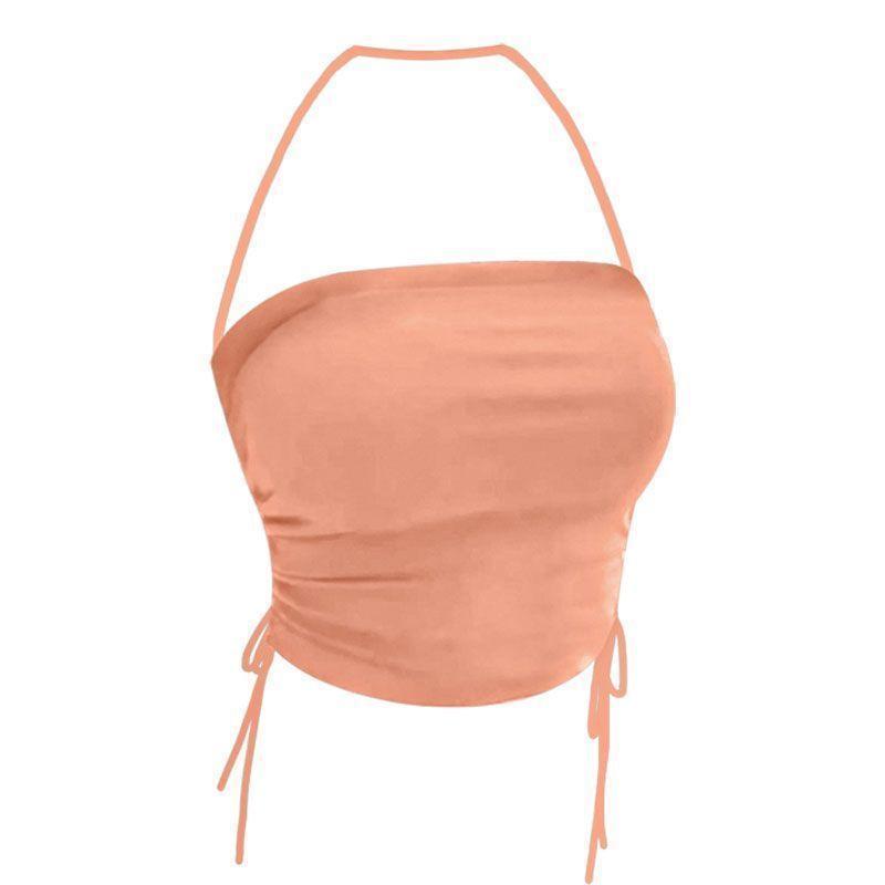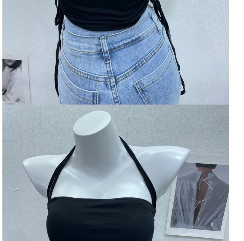 [Atacado Transfronteiriço] Desejo Puro Garota Quente Regata Gola Halter Sem Costas Moda Feminina Sexy Top de Cintura com Cadarço