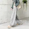 Calças Femininas com Bainha Curva 2026 Nova Primavera e Outono Cinza Reto Solto Casual Estilo Banana Esportivo Preguiçoso Calças de Pernas Largas para Mulheres