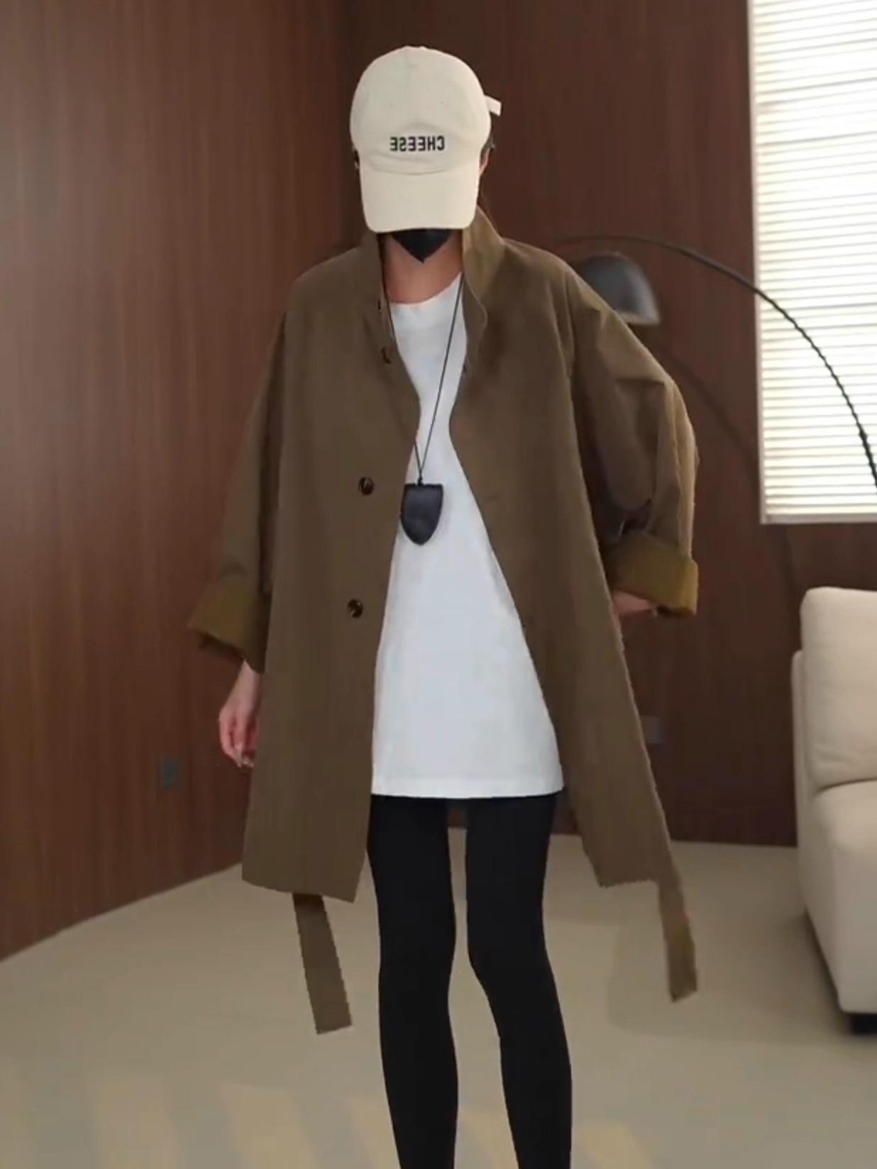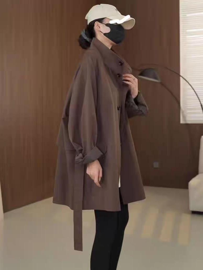 Trench Coat Retrô de Gola Alta Comprimento Médio Feminino 2025 Outono Novo Moda High-end Estilo Estrangeiro Solto Casual Casaco Tendência