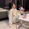 Conjunto esportivo casual de estilo high-end para mulheres, primavera e outono, moda estilo coreano, modelagem slim, cardigã com gola alta, moletom, conjunto de duas peças