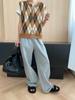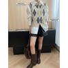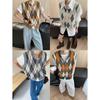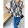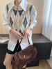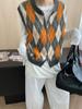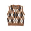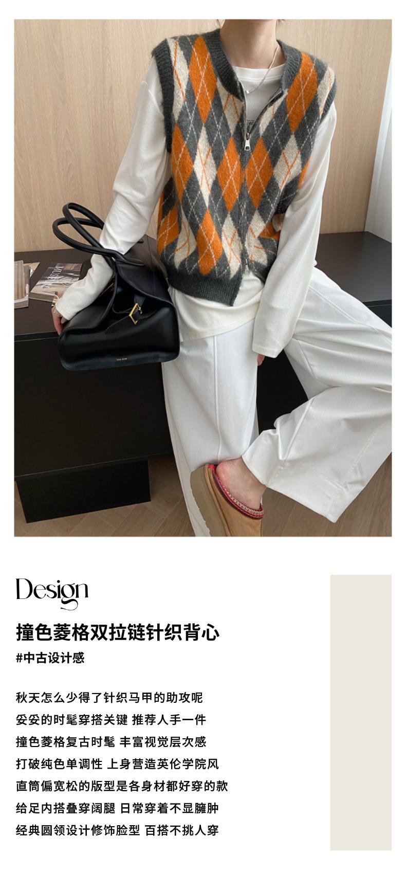 Sinan Usado Senso de Design Estilo College Bloco de Cores Argyle Gola Redonda Zíper Duplo Colete Tricotado SN7857