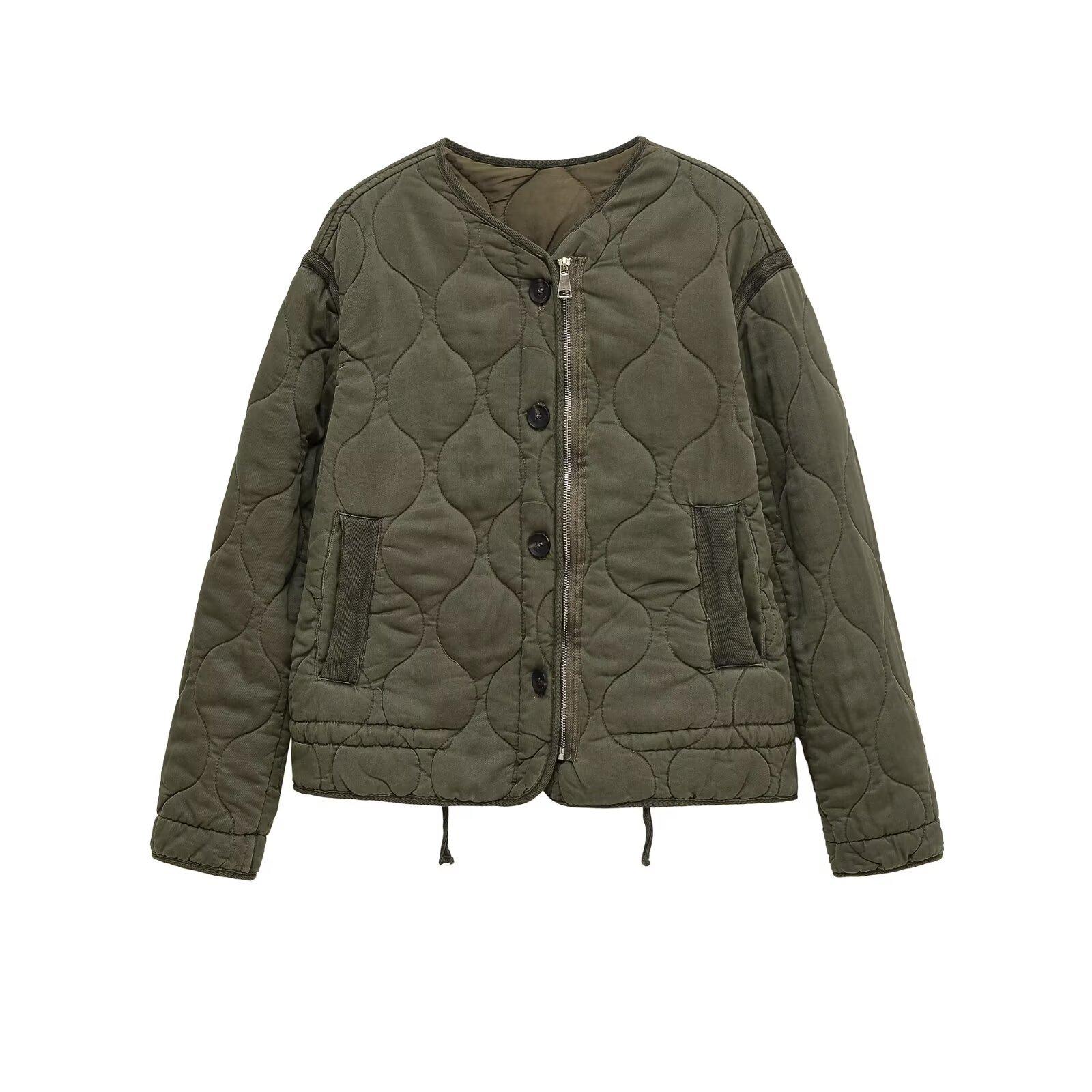 2025 Outono/Inverno Nova Moda Versátil Casual Solto Emagrecimento Manga Longa Gola Redonda Abotoamento Simples Algodão Jaqueta Casaco Mulheres