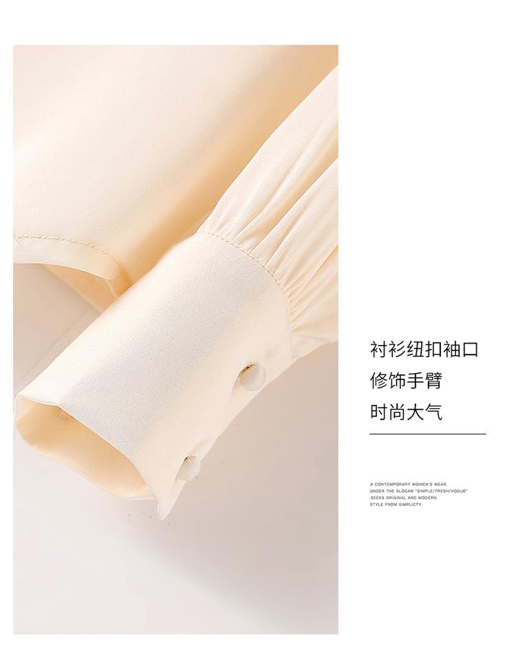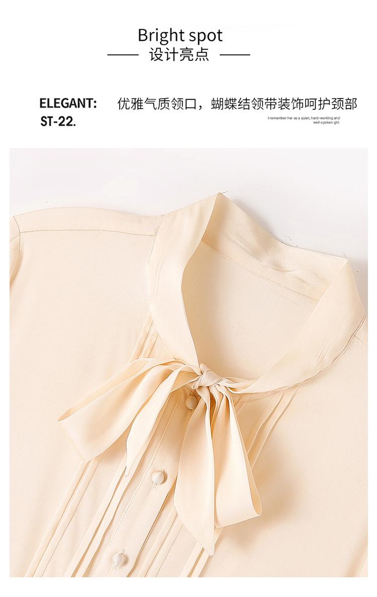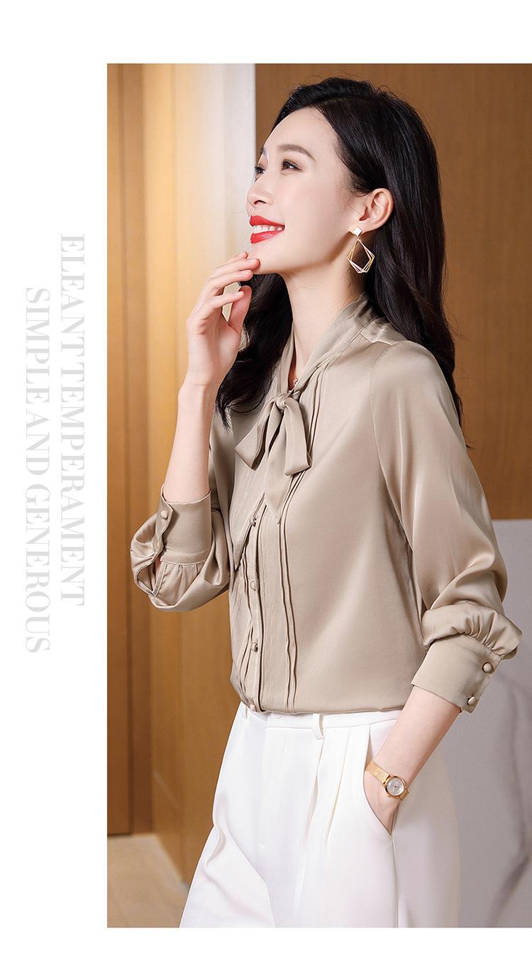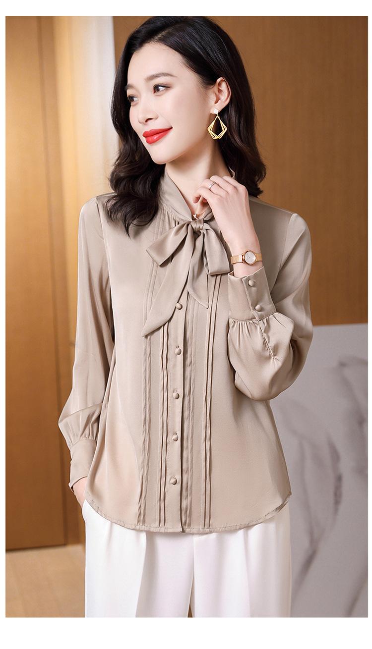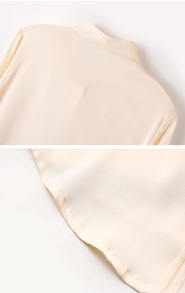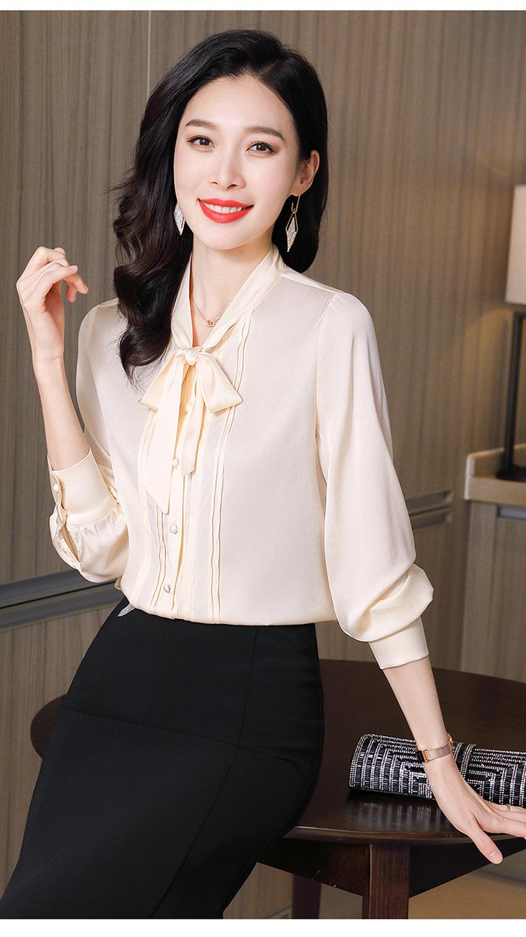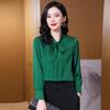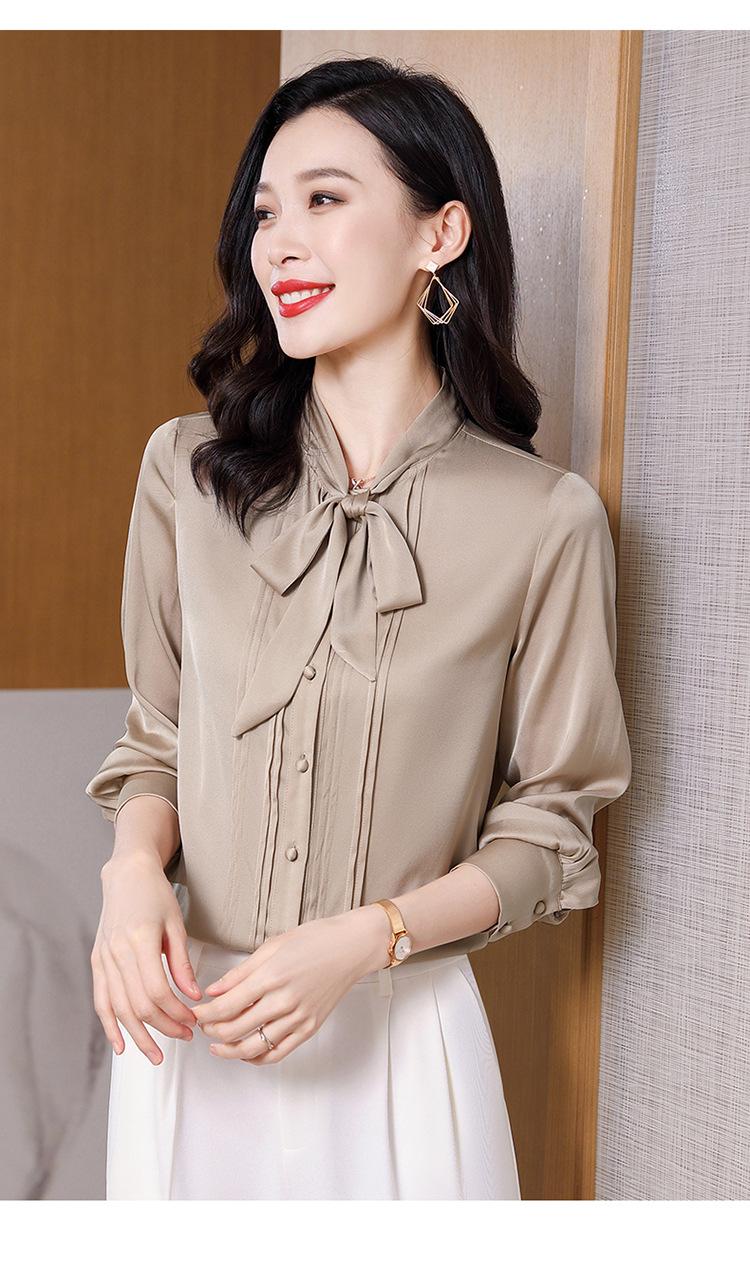 Camisa Nova de Primavera e Outono de Seda Pesada de Alta Qualidade para Mulheres, Camiseta de Seda de Amora com Laço de Fita de Manga Comprida