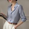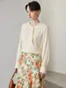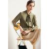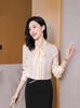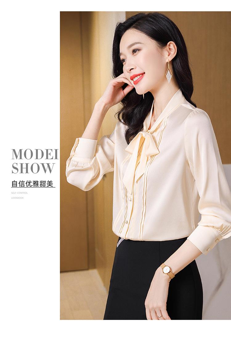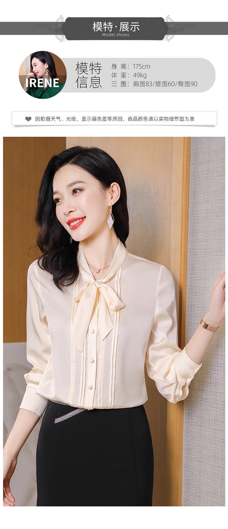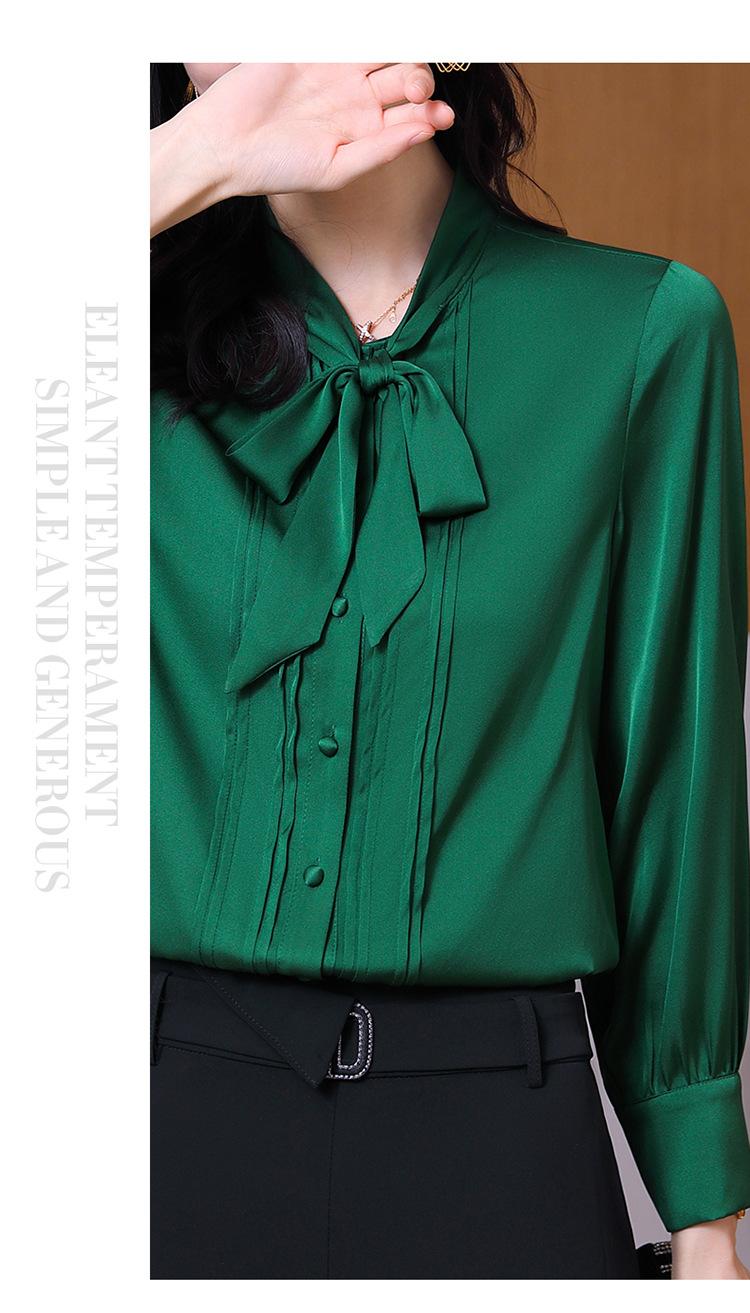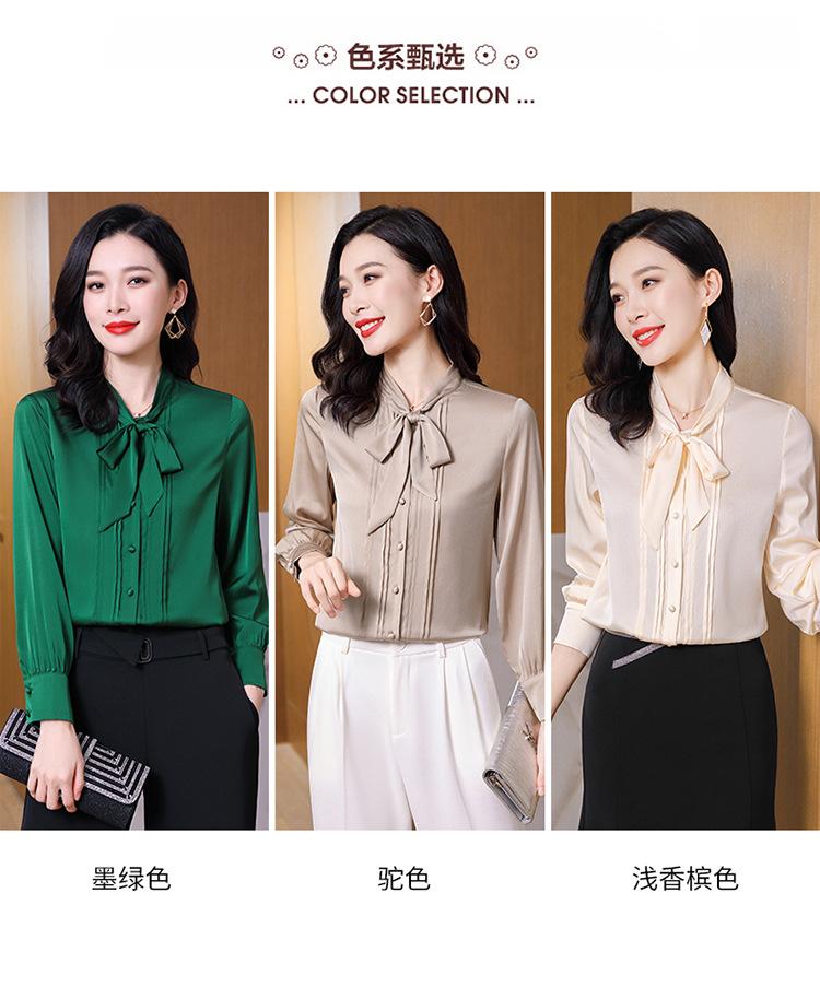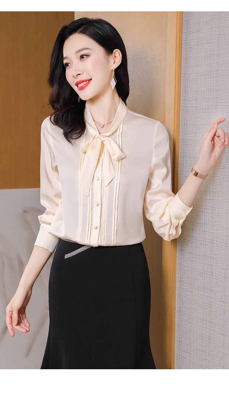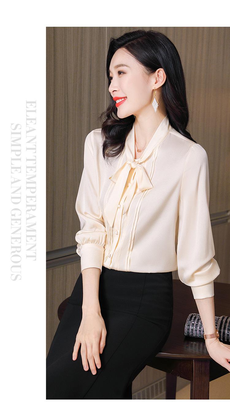 Camisa Nova de Primavera e Outono de Seda Pesada de Alta Qualidade para Mulheres, Camiseta de Seda de Amora com Laço de Fita de Manga Comprida