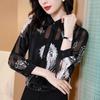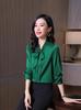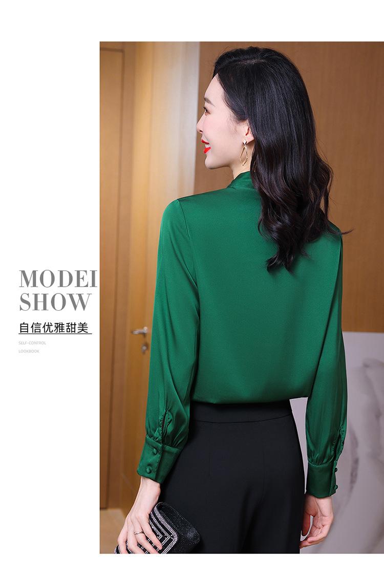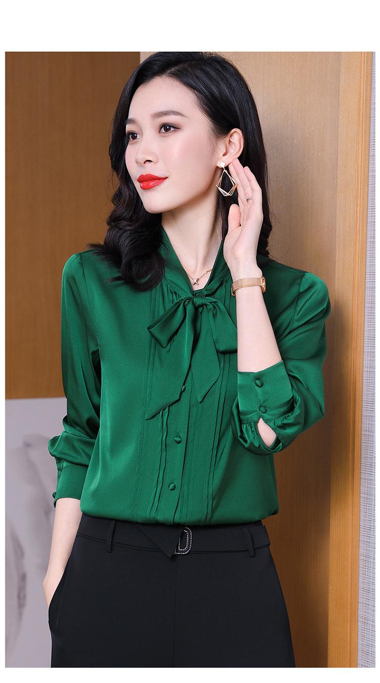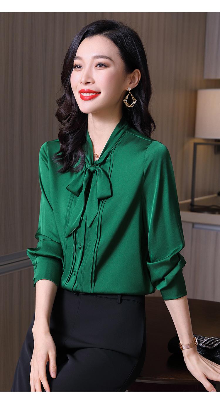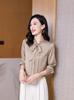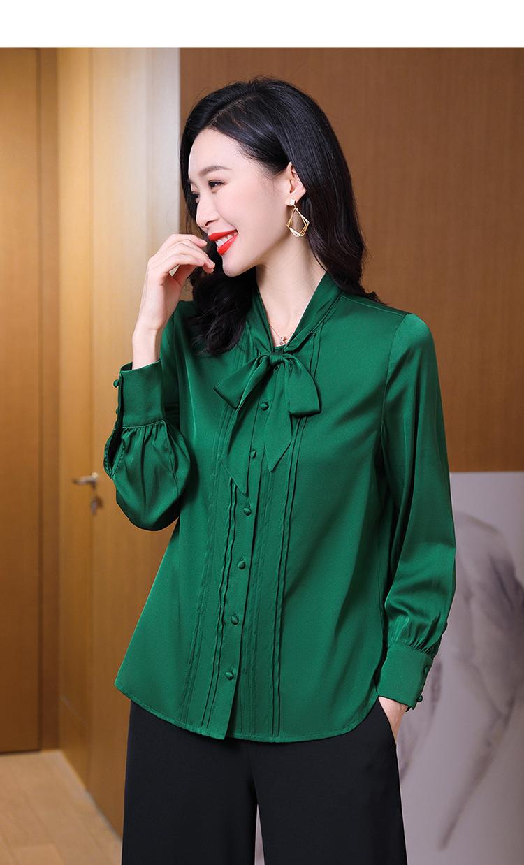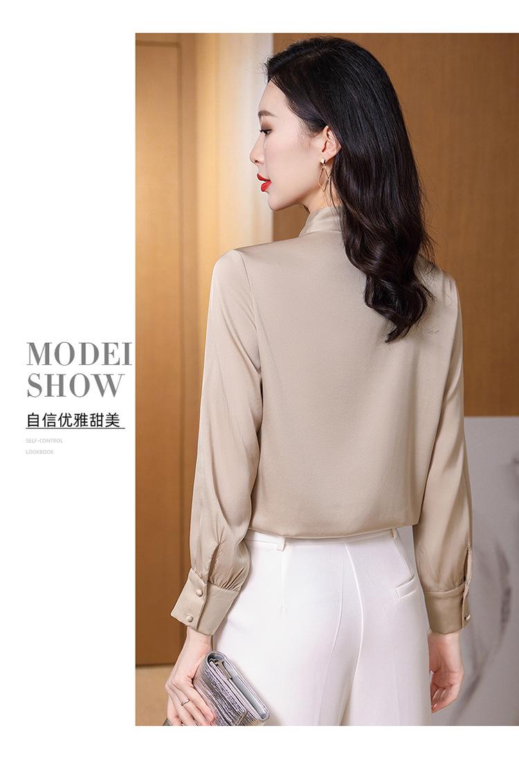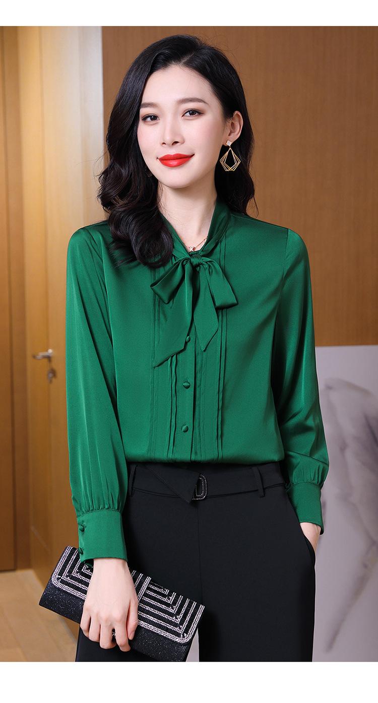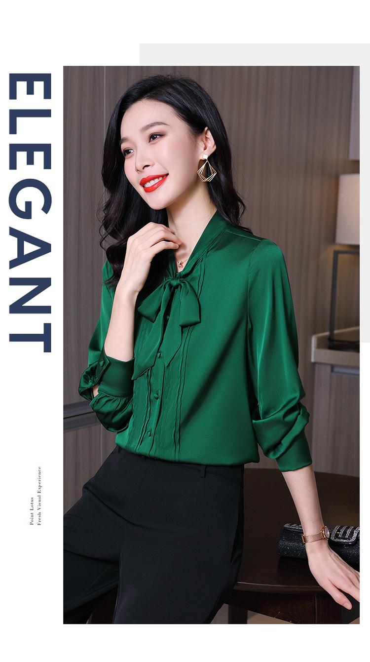 Camisa Nova de Primavera e Outono de Seda Pesada de Alta Qualidade para Mulheres, Camiseta de Seda de Amora com Laço de Fita de Manga Comprida
