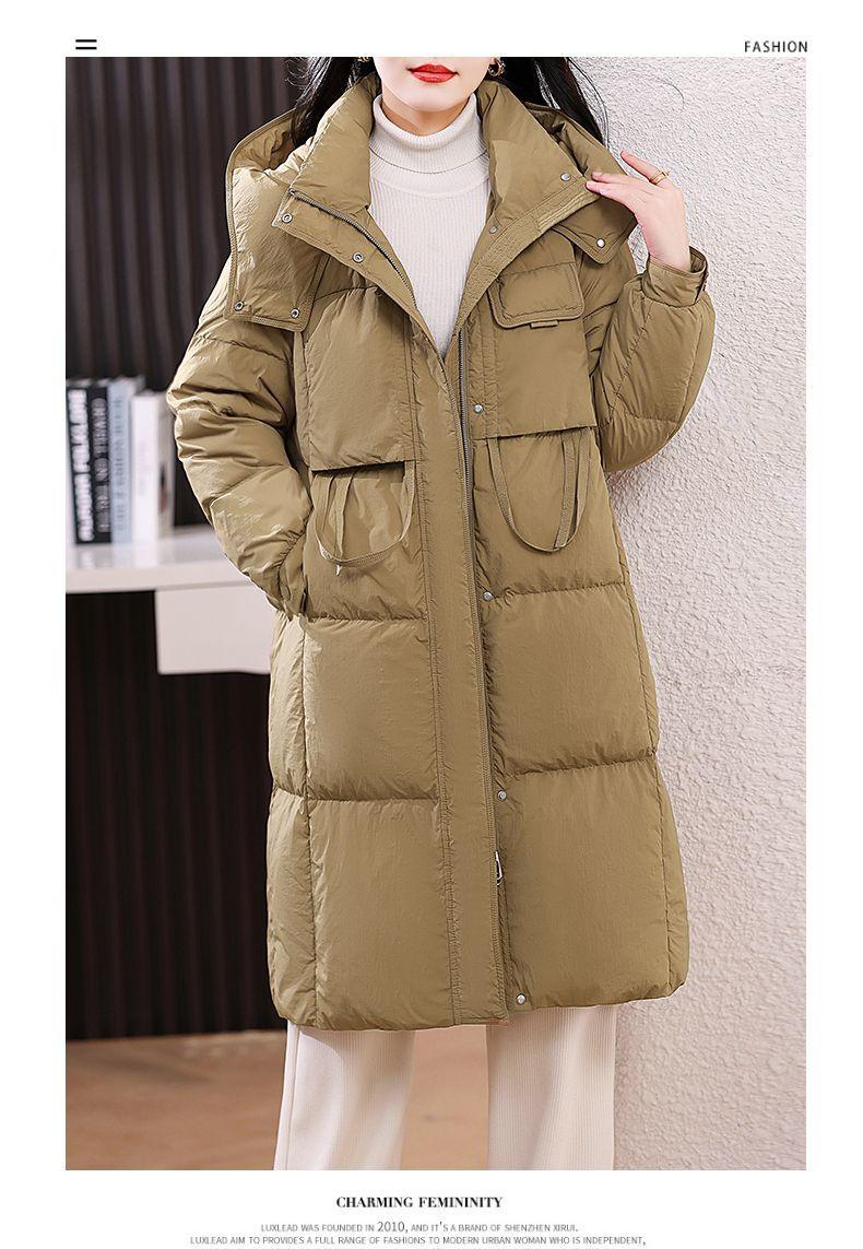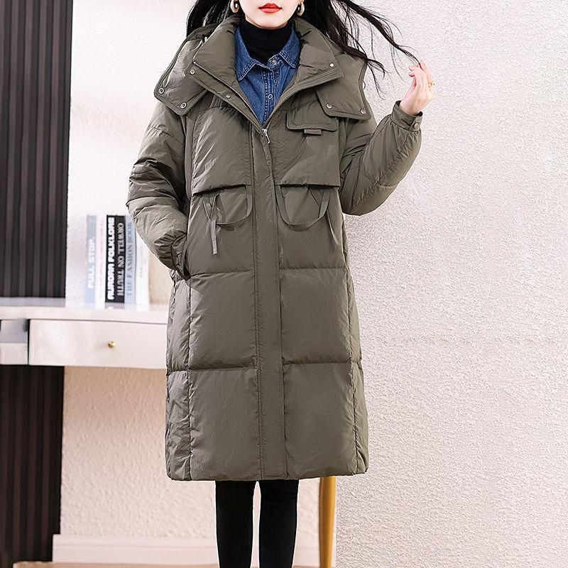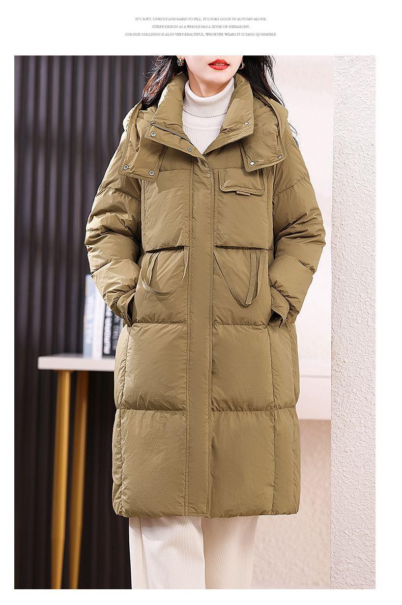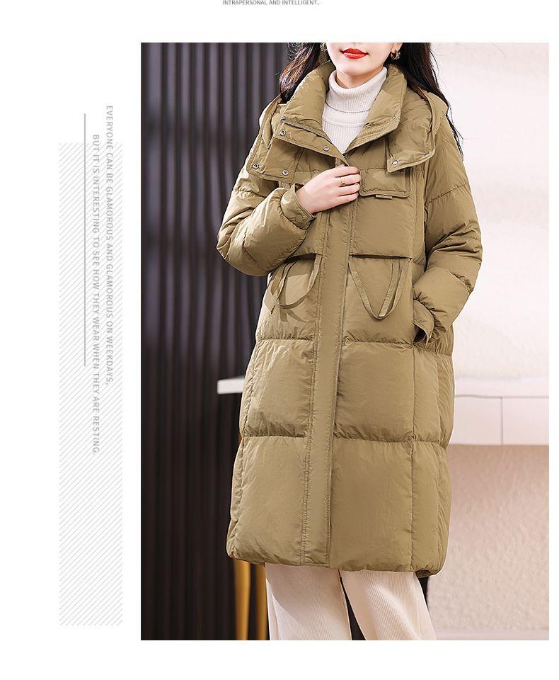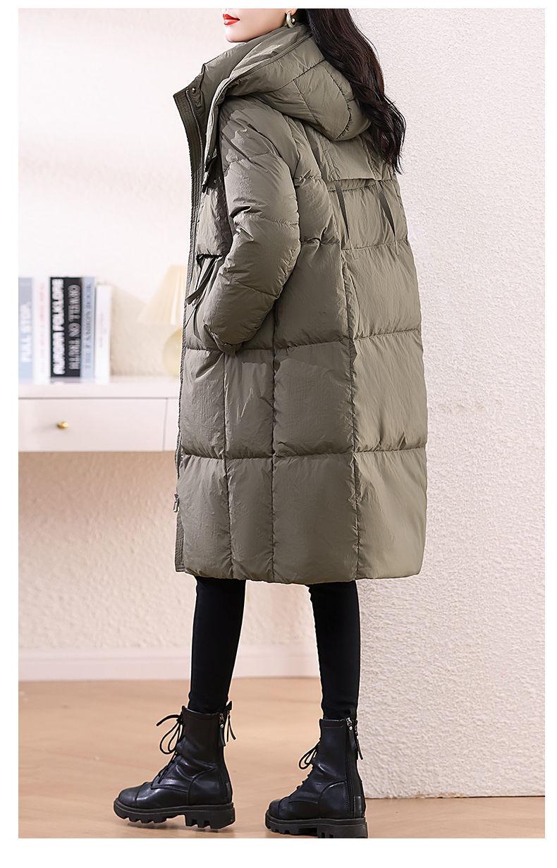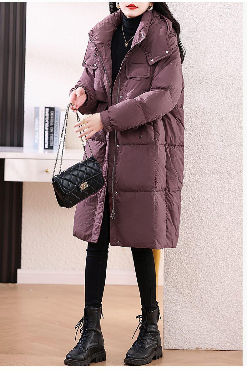 Jaqueta de Penas Feminina 2025 Nova Comprimento Médio Solta Emagrecimento Espessada Quente Penas de Pato Branco Casaco com Capuz Inverno Luxo Leve