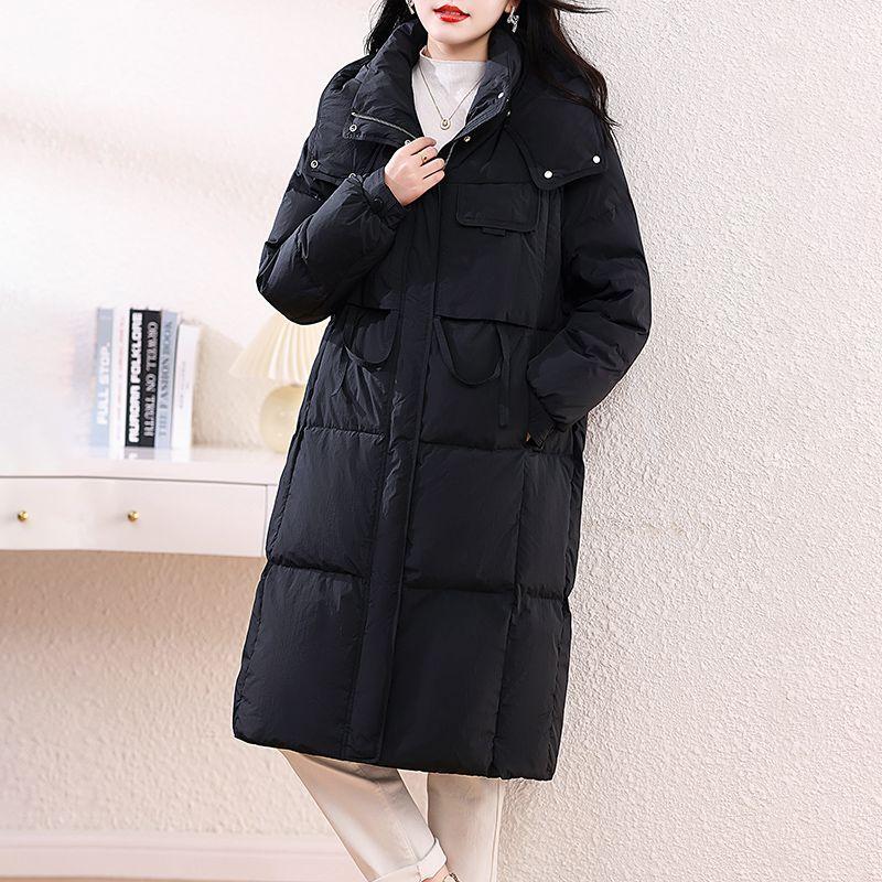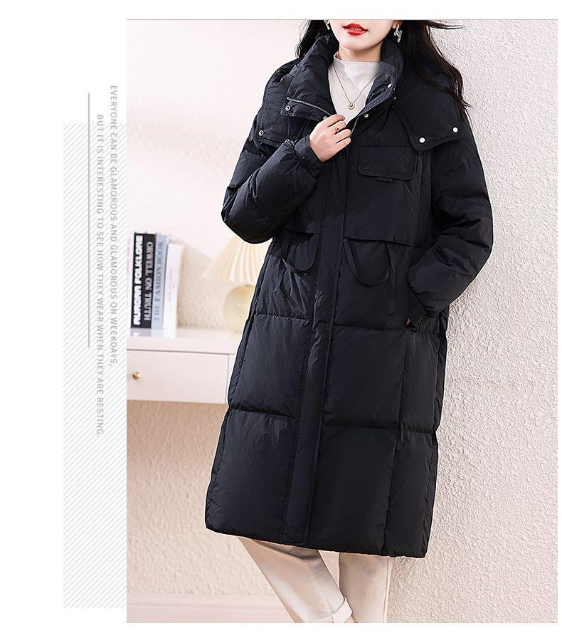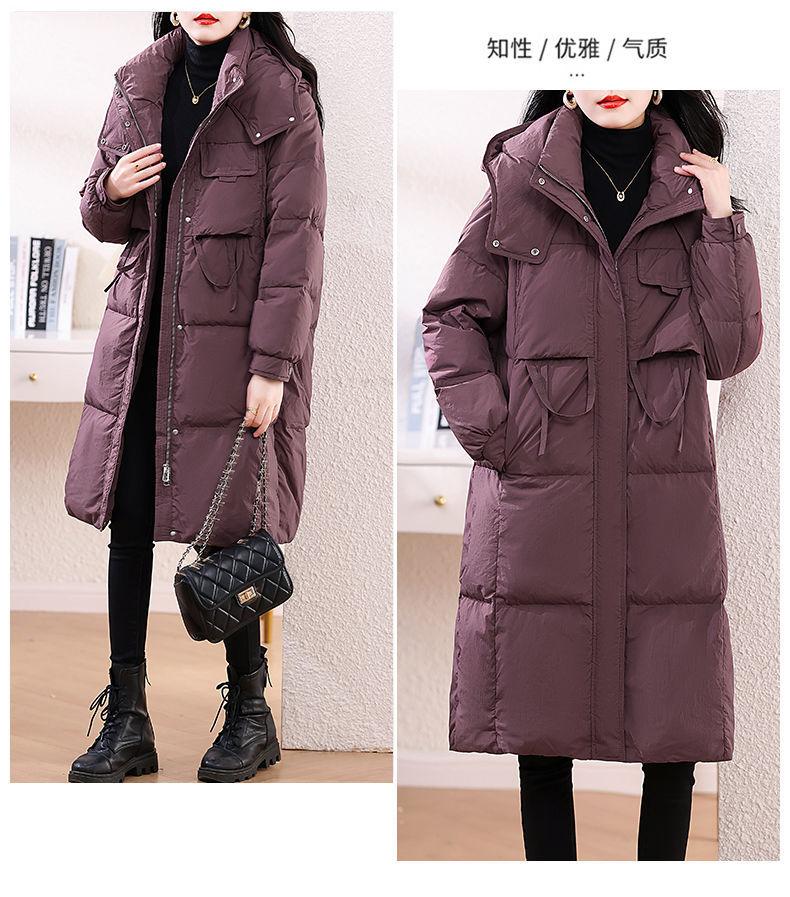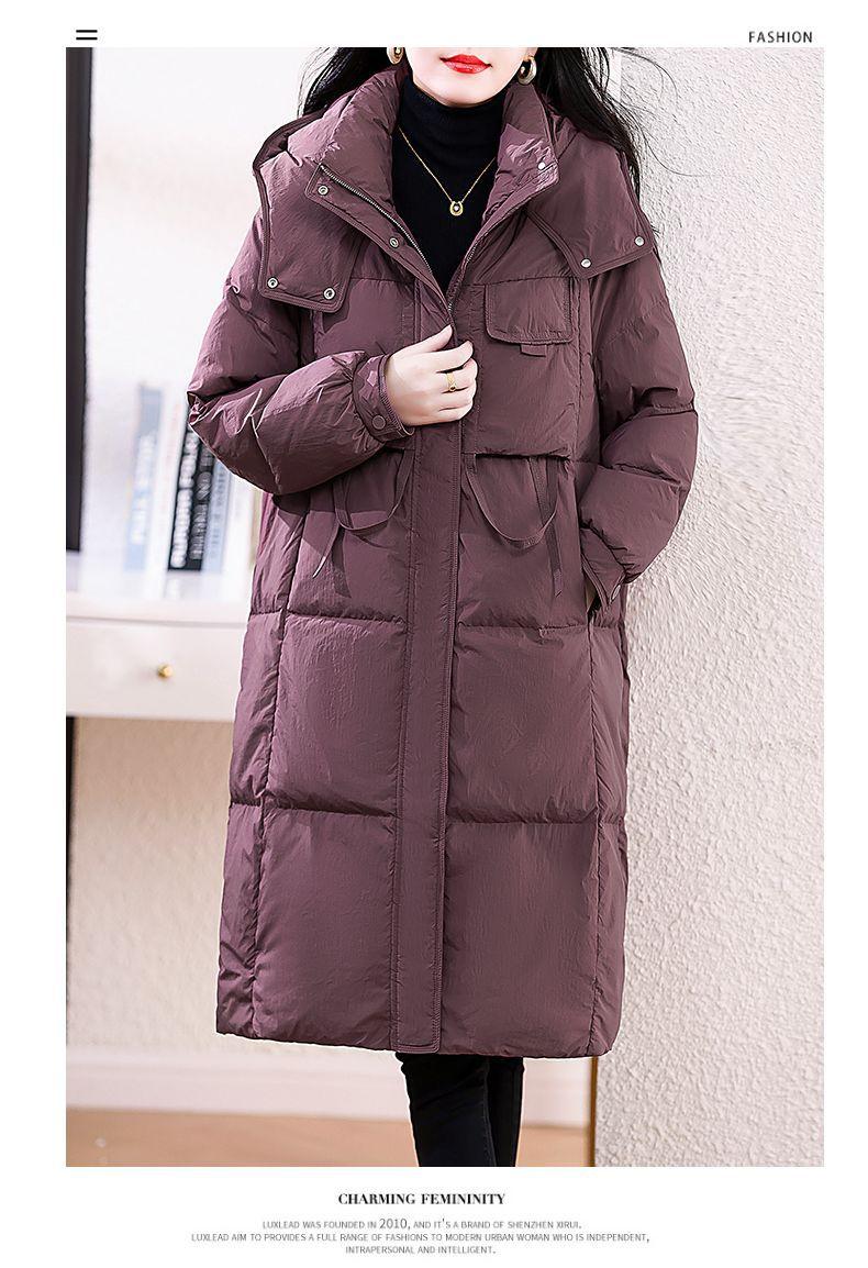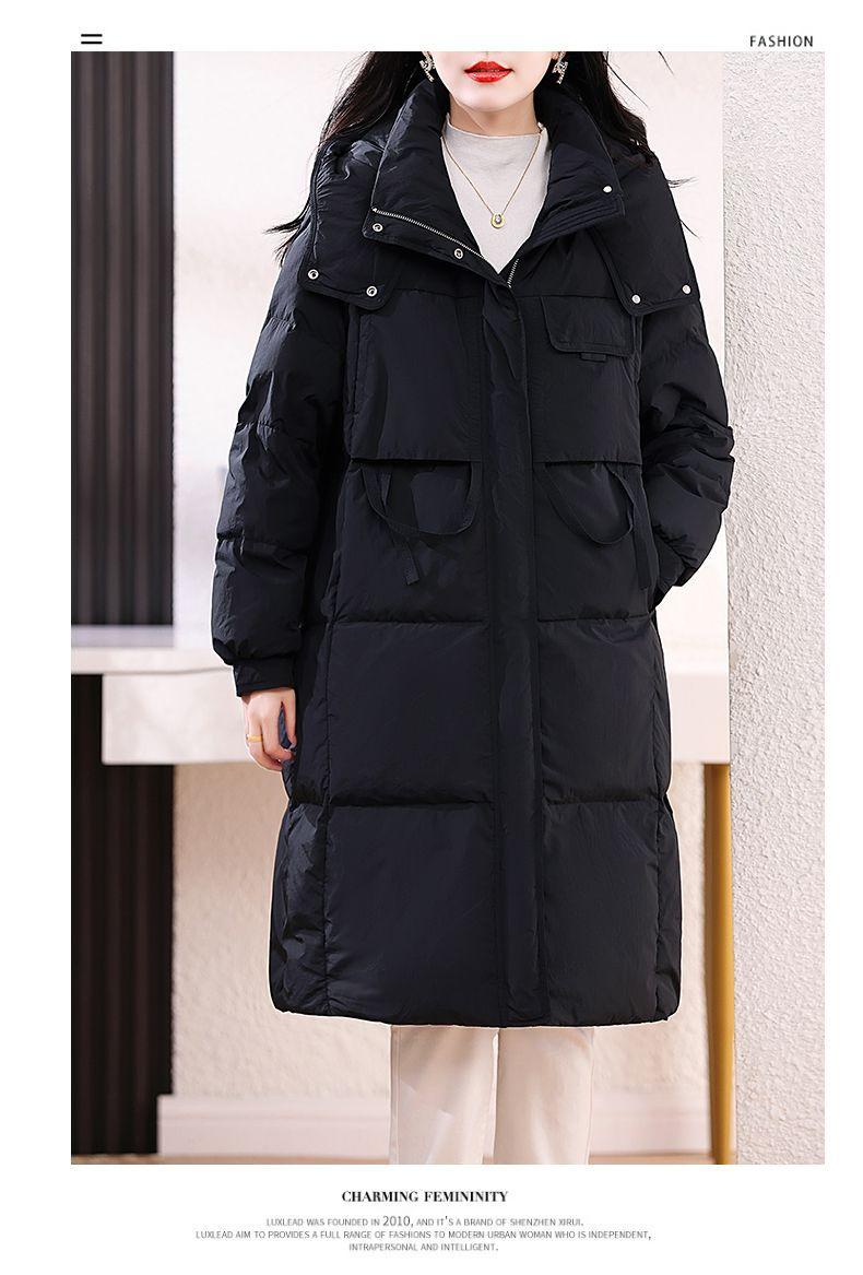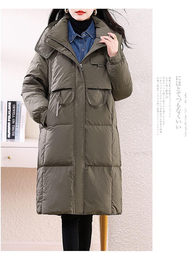 Jaqueta de Penas Feminina 2025 Nova Comprimento Médio Solta Emagrecimento Espessada Quente Penas de Pato Branco Casaco com Capuz Inverno Luxo Leve
