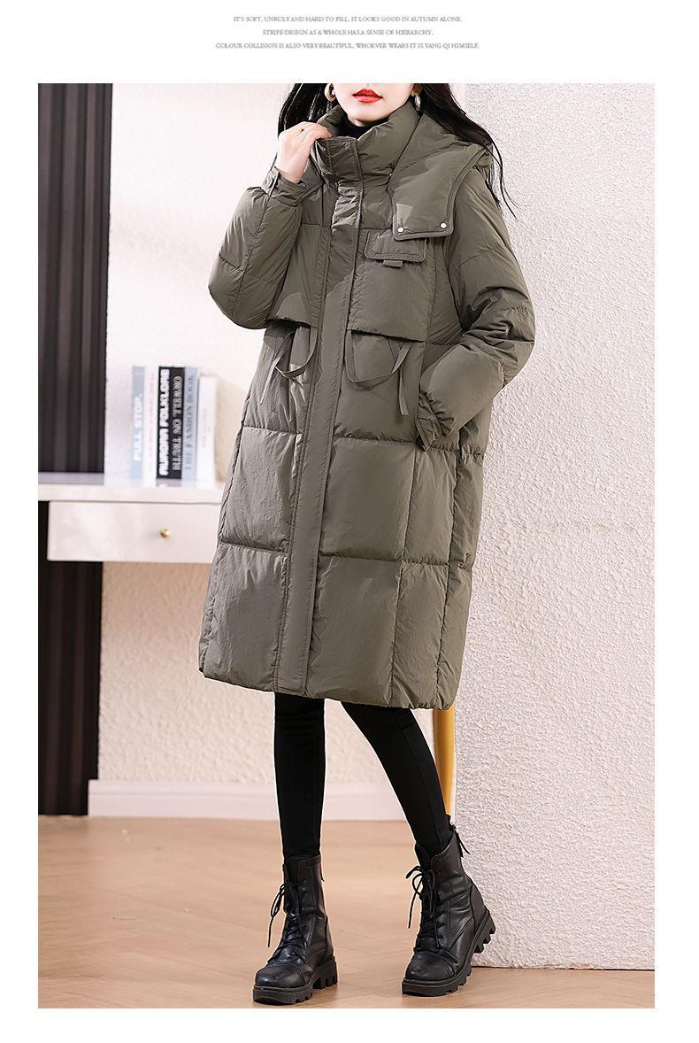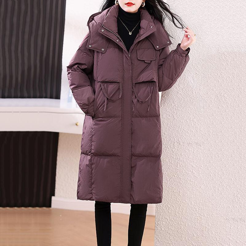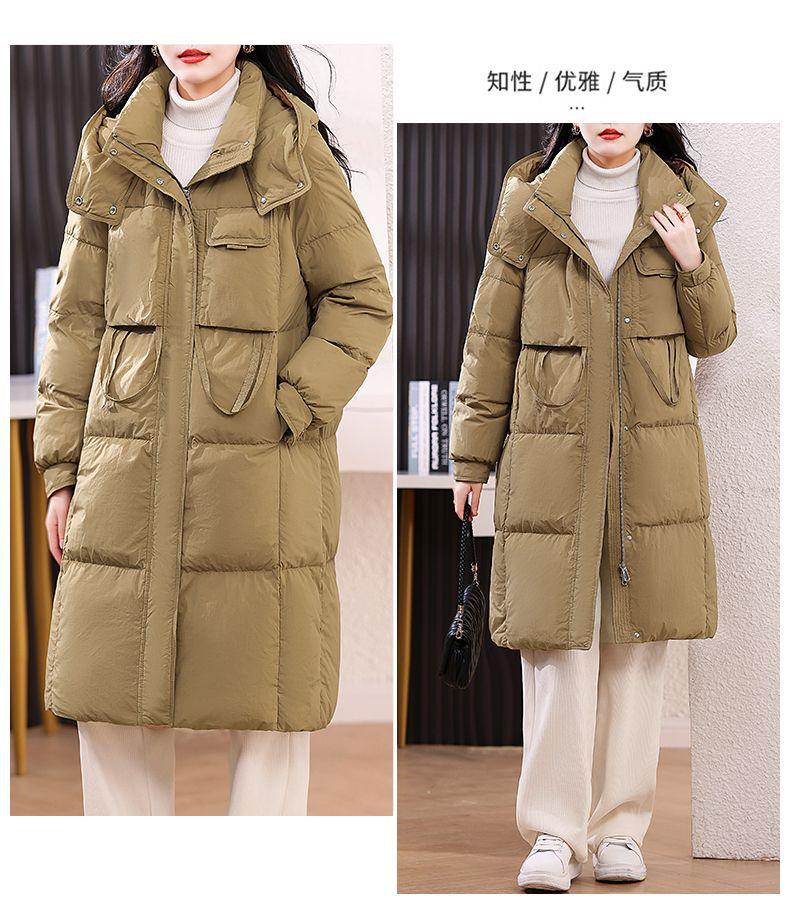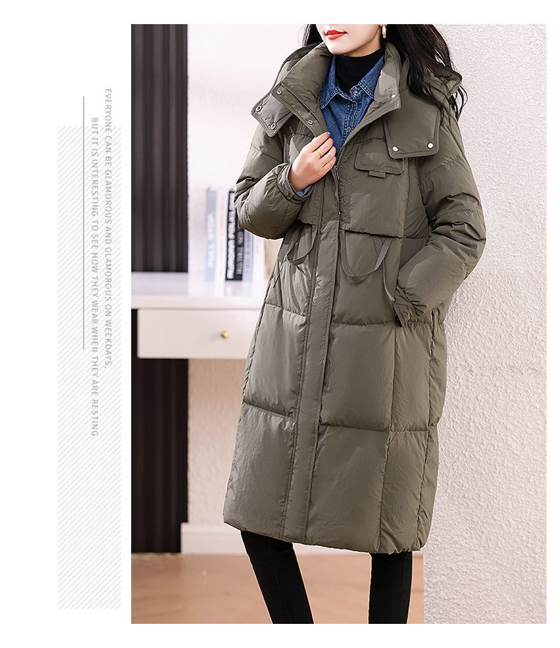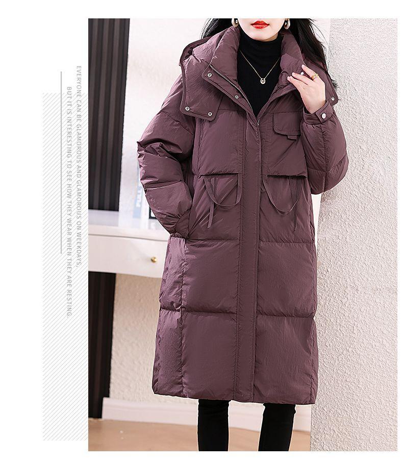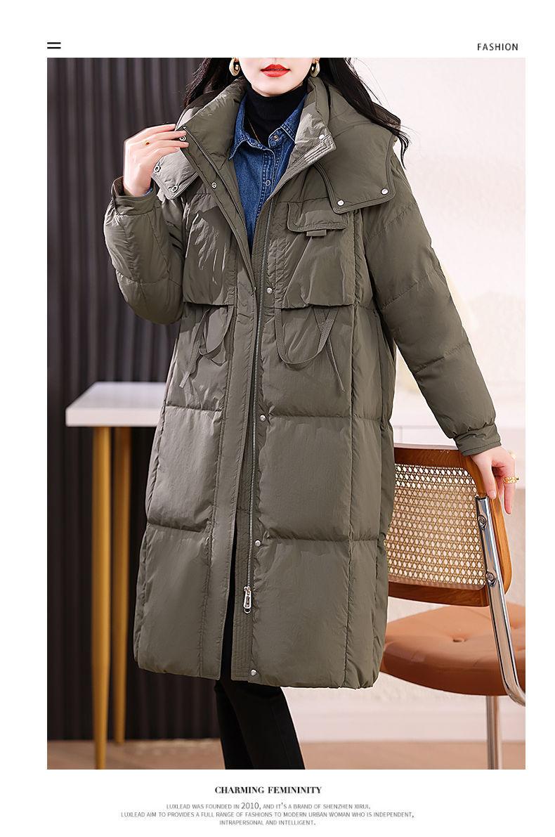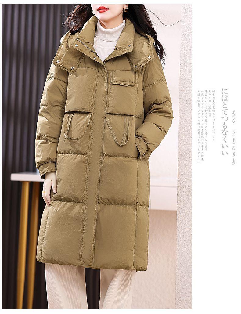 Jaqueta de Penas Feminina 2025 Nova Comprimento Médio Solta Emagrecimento Espessada Quente Penas de Pato Branco Casaco com Capuz Inverno Luxo Leve