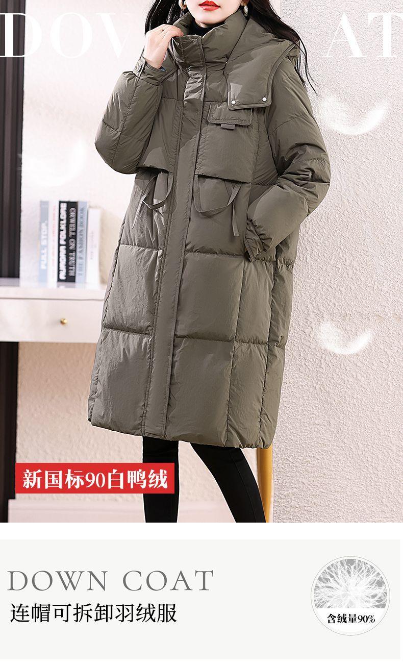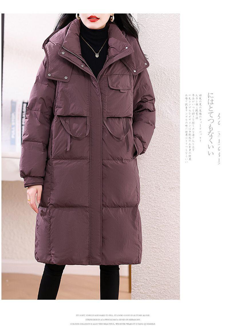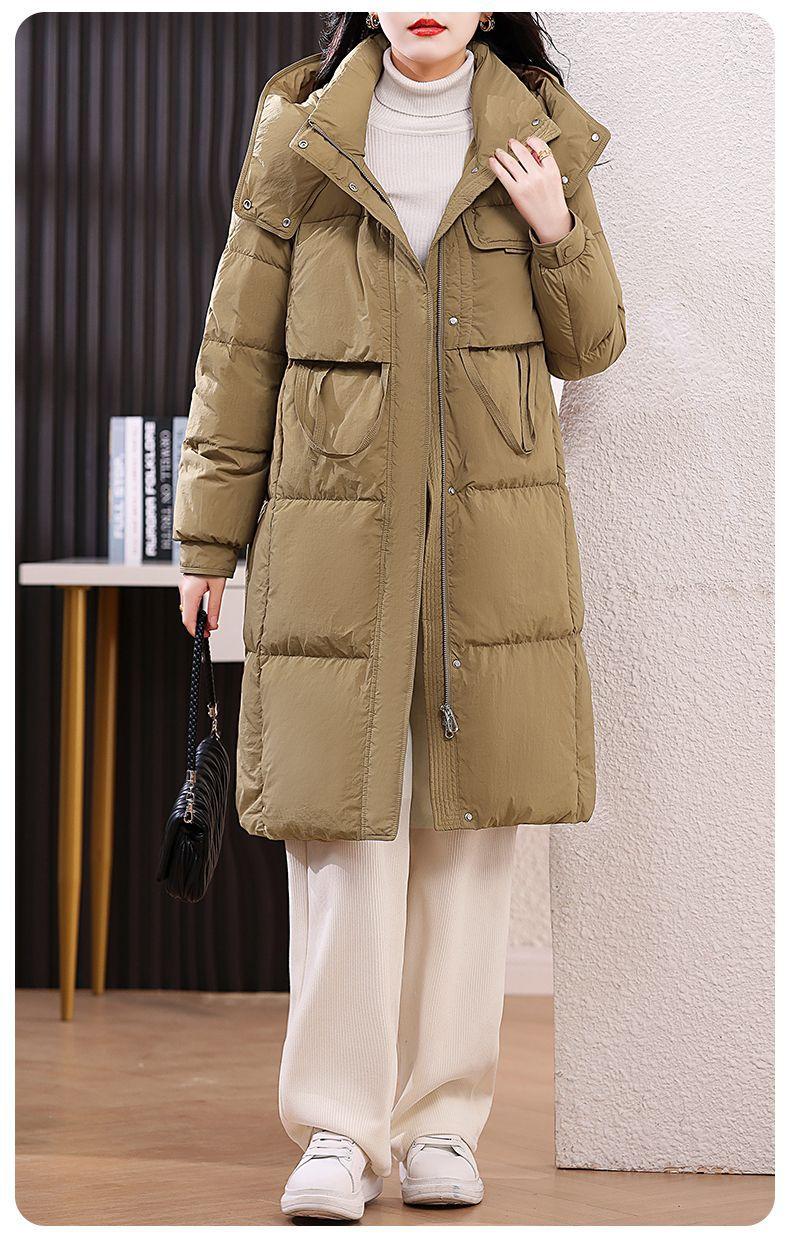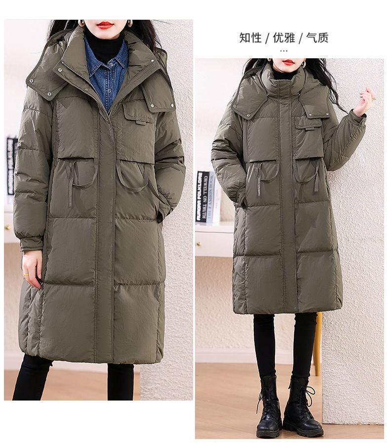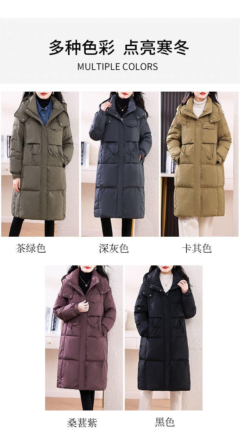Jaqueta de Penas Feminina 2025 Nova Comprimento Médio Solta Emagrecimento Espessada Quente Penas de Pato Branco Casaco com Capuz Inverno Luxo Leve