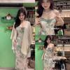 Compre Vestido Longo de Renda Floral com Alça Estilo Chinês Outono Plus Size Cinto na Cintura Conjunto de Duas Peças Jaqueta Cardigan Tendência no atacado no Joom.pro