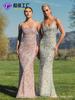 Zhuopin Vestuário Personalizado Moda Europeia e Americana Transfronteiriça Saia de Suspensório com Lantejoulas Cauda de Peixe Sexy Elegante Longo Vestido de Banquete de Noite