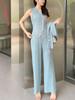 Nanyou Atacado de Fábrica Nicho Europeu e Americano Novo Estilo Conjunto Feminino de Triacetato Blazer de Um Botão Calças Micro Flare Emagrecedoras