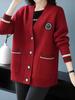 Jaqueta Cardigan de Tricô para Mulheres Outono e Inverno 2025 Nova Roupa para Mães Suéter Solto e Estiloso com Decote V Elegante e Fashion