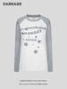 Camiseta de Manga Longa com Costura em Contraste de Letra Coreana e Estrela para Mulheres 2025 Outono Nova Ins Slim Modelagem que Emagrece Top