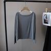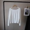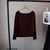 [Bi Zheng] Outono 2025 Novo Estilo Coreano Cor Sólida Decote Assimétrico Ombro a Ombro Casual Versátil Manga Longa Camiseta Básica Feminina 4939