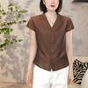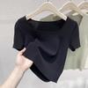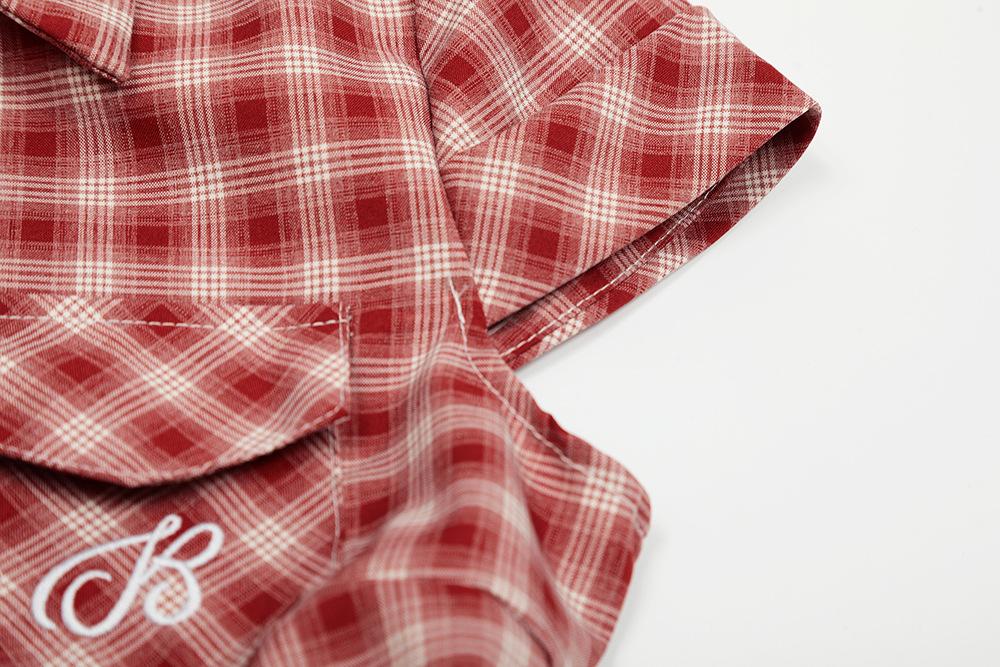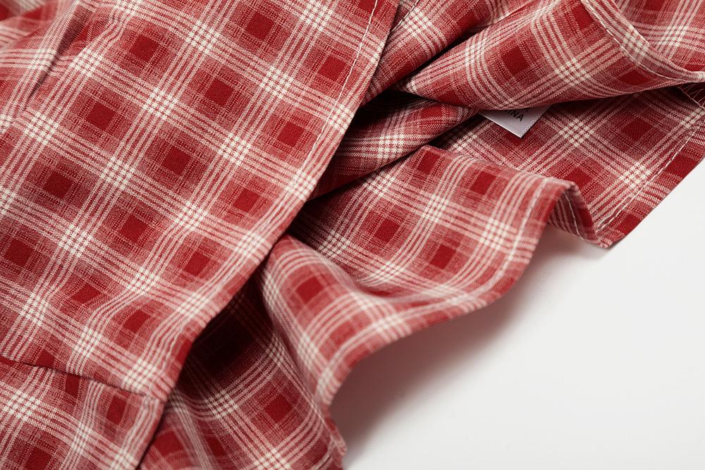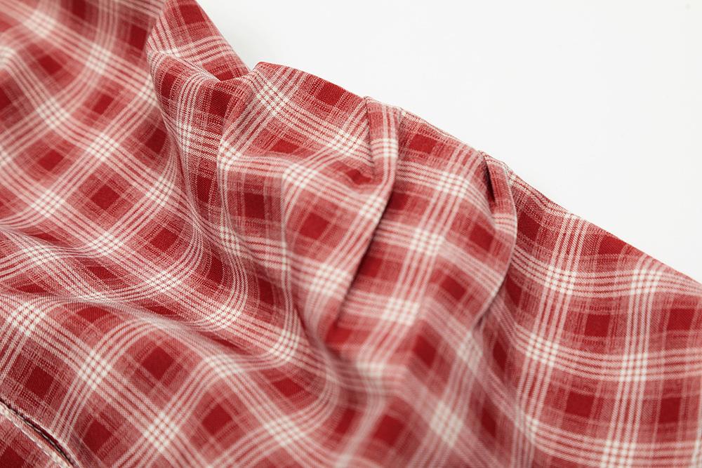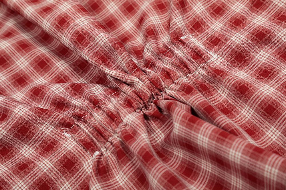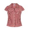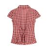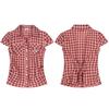 2025 Nova Camisa Retrô Americana de Manga Curta Xadrez com Contraste de Cor Feminina Verão Afunilamento da Cintura Sexy Top de Menina Quente