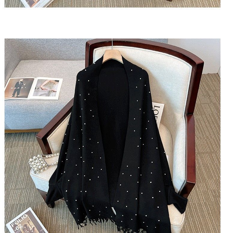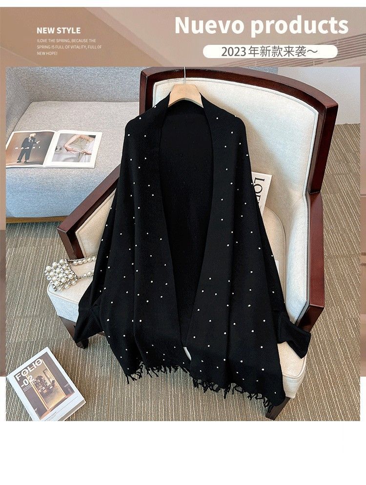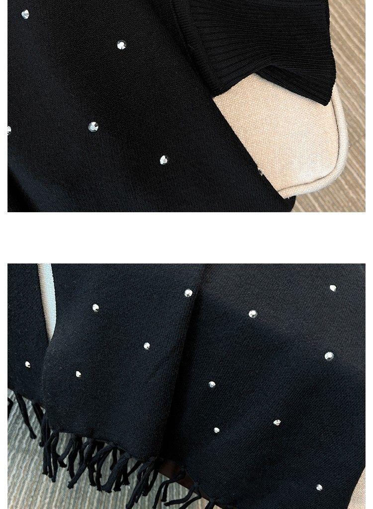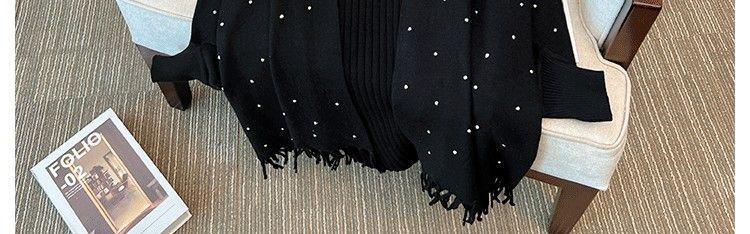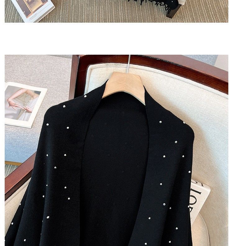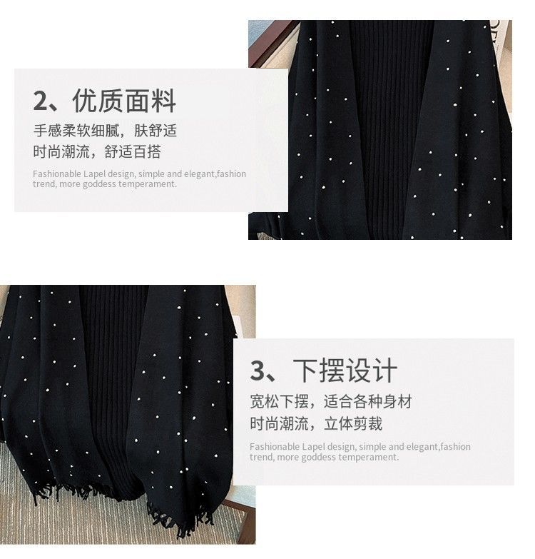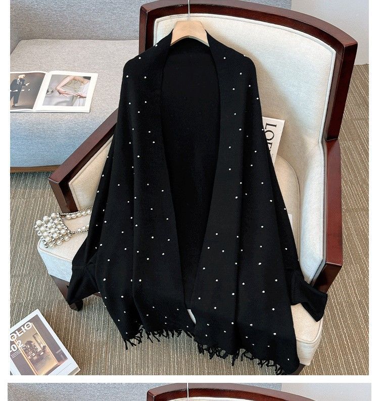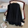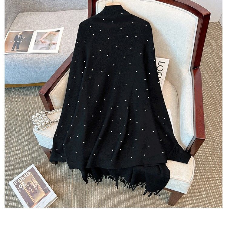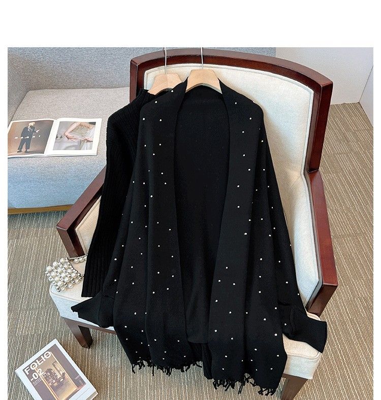 Xale Poncho Suéter Casaco Borla Outono Inverno Solto mm Tricô Cardigan Comprimento Médio Top Preto Seda Gelo Regular