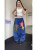 Jeans Scimitar Estampado Retro Americano Transfronteiriço para Mulheres Outono Inicial Novas Calças de Rua Dança Perna Larga Soltas