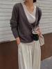 Moda Cor Contrastante Falso Duas Peças Tricô Novo Outono e Inverno Estilo Coreano Design de Nicho Camada Base Preguiçoso Solto Suéter Top