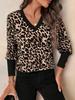 Europa e Estados Unidos transfronteiriços Amazon nova camiseta leopardo manga longa decote V
