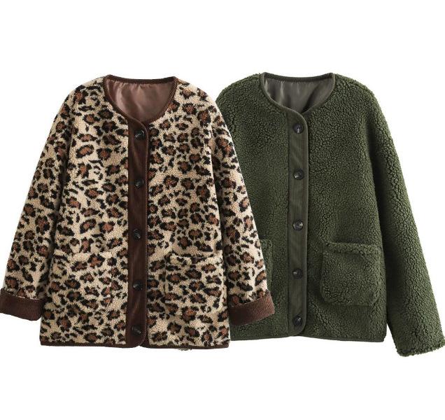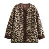 Moda feminina europeia e americana transfronteiriça AliExpress mais vendido casaco casual solto de manga comprida em lã de cordeiro com estampa de leopardo