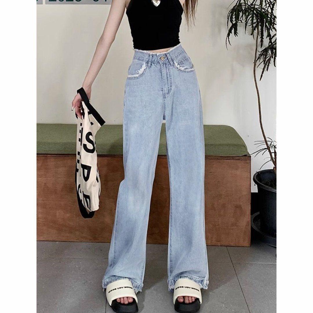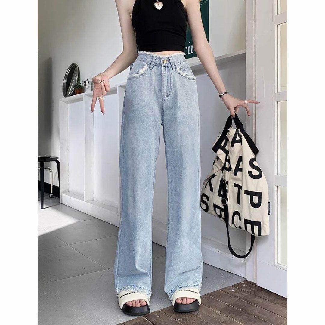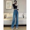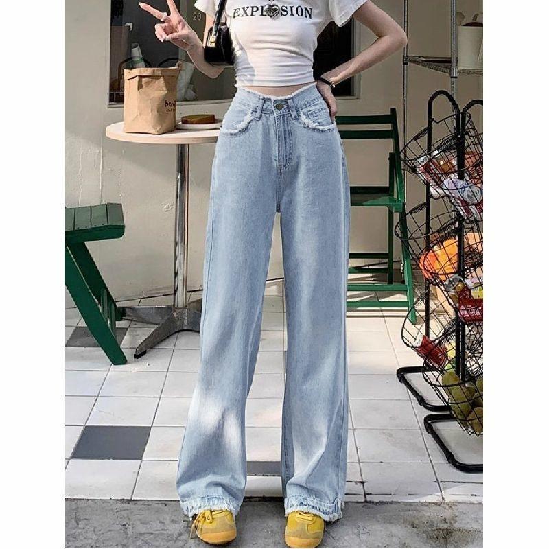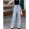 Jeans Retos Versátil Nicho Emagrecimento 2025 Alto Cintura Alta Calças Estreitas Perna Larga Feminino Azul Claro