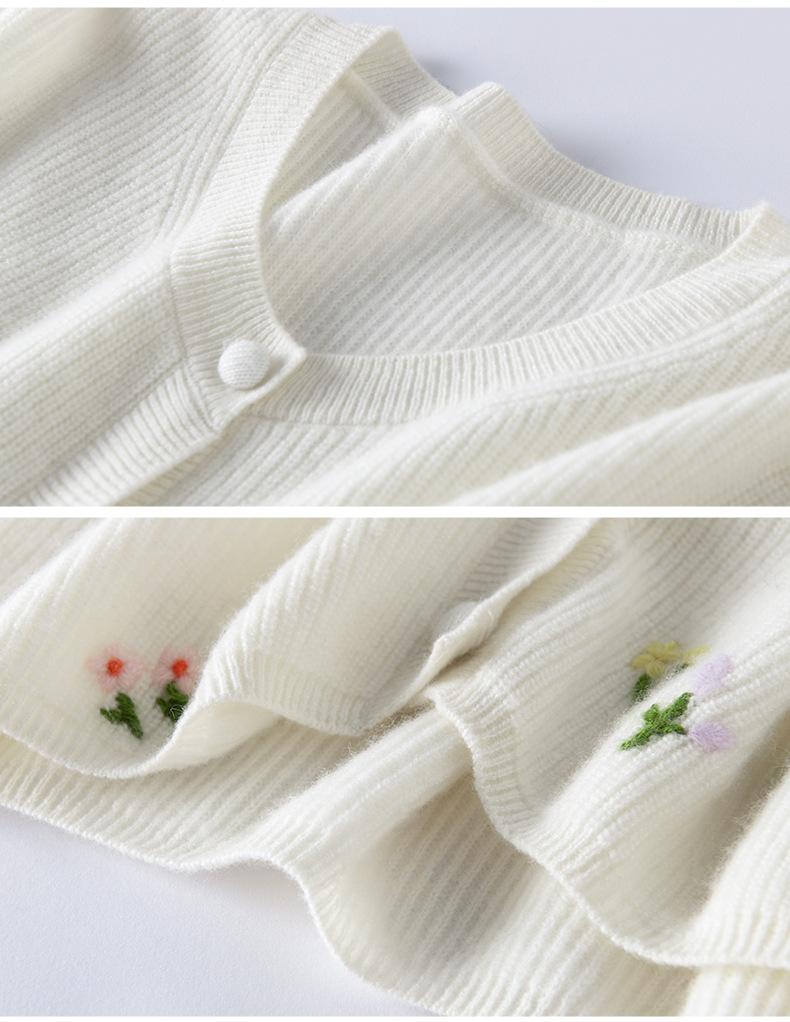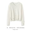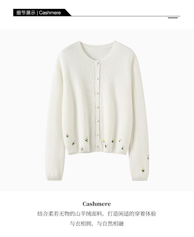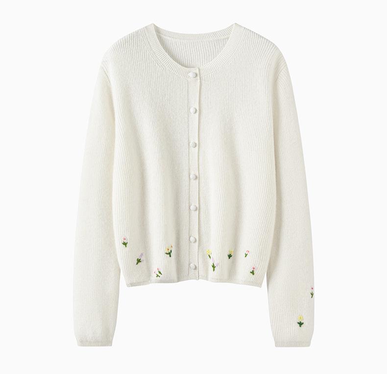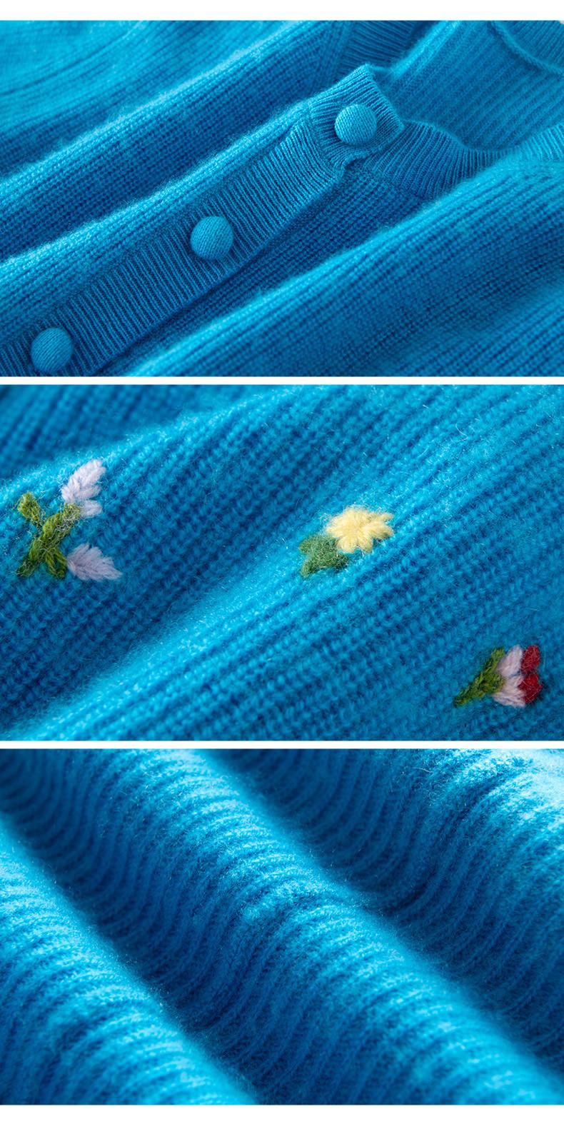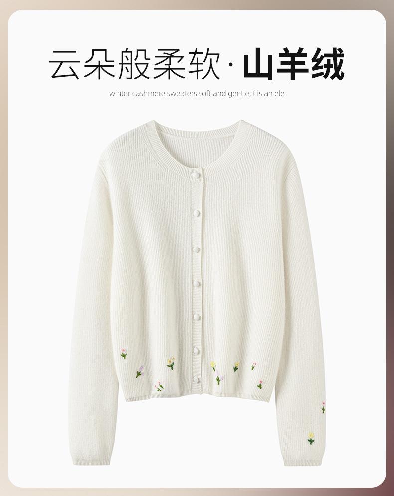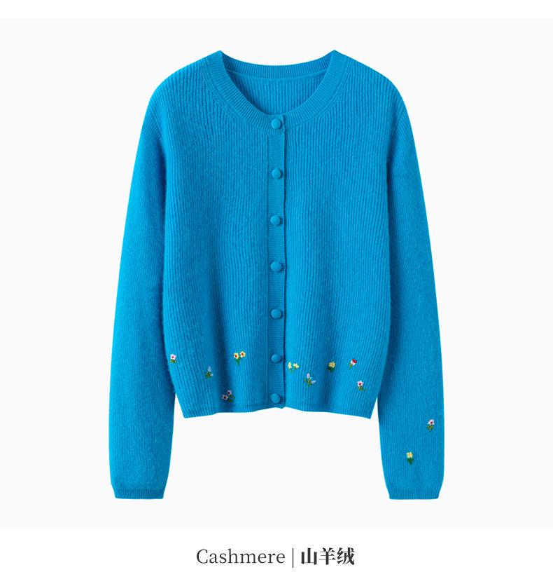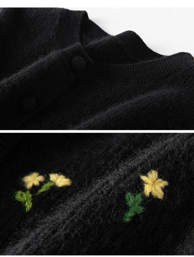 Novo Estilo Outono/Inverno Cardigan Bordado Ponto Lingote Suéter de Caxemira Moda Feminina Versátil Clássico Gola Redonda Casaco Bordado