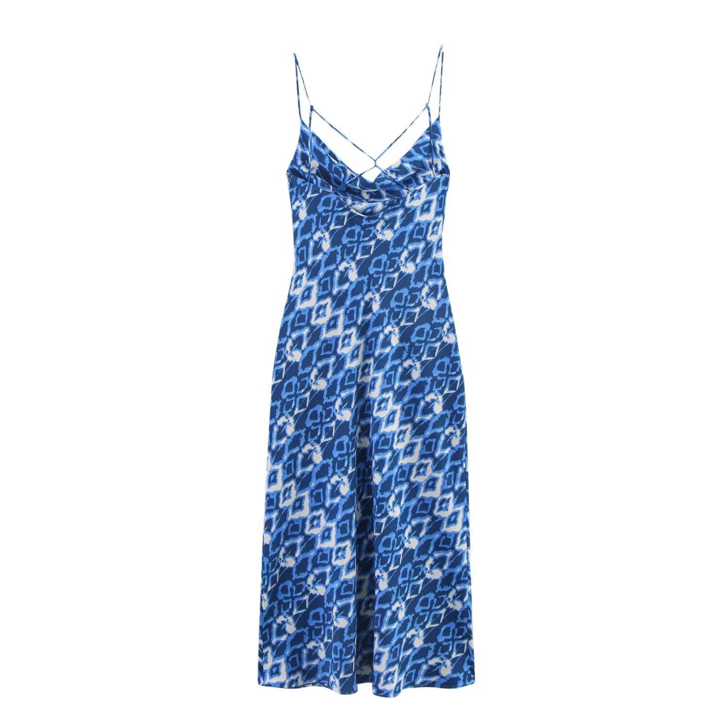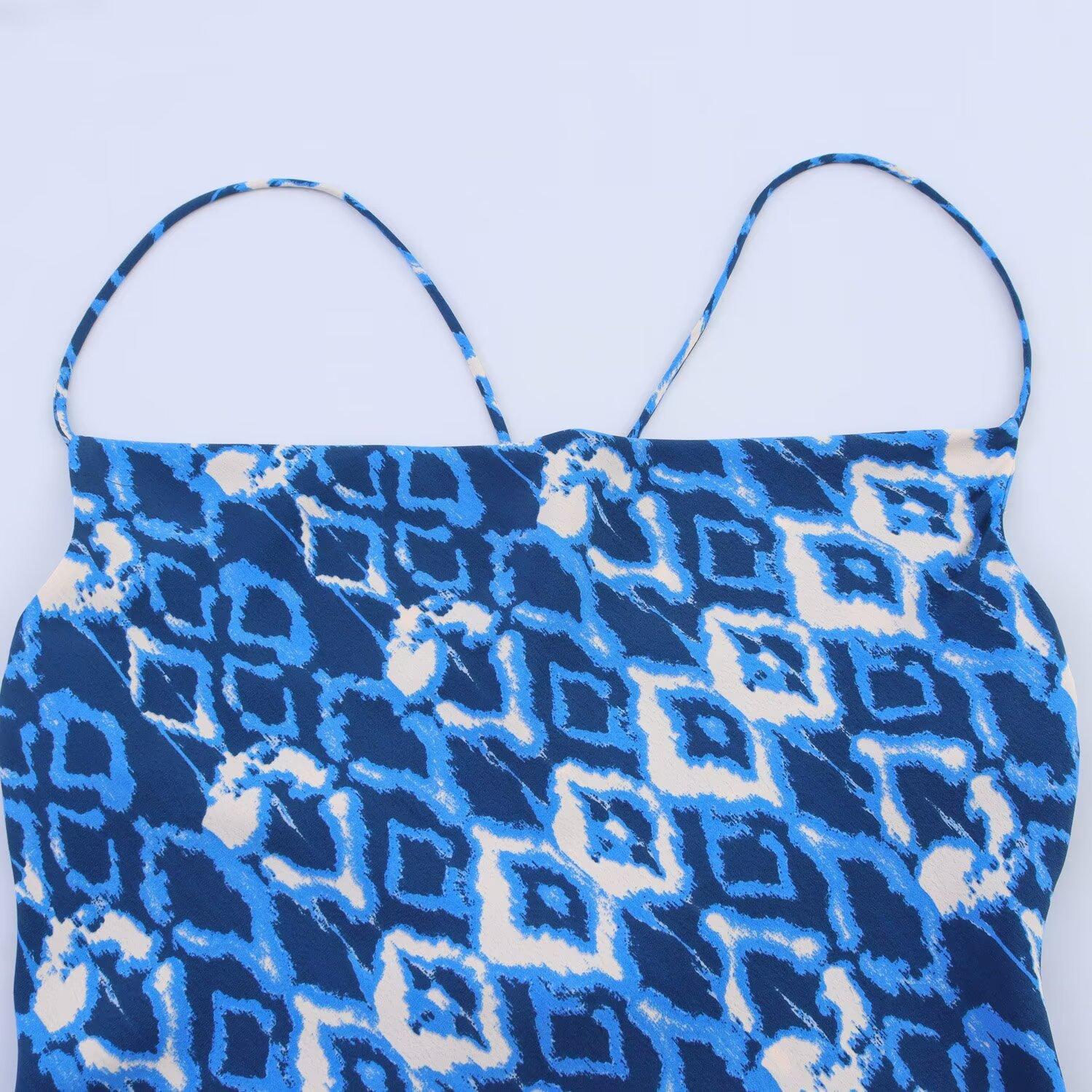 Roupa Europeia e Americana Transfronteiriça 2025 Primavera e Verão Nova Moda Estampada Íntima Vestido Midi 3666055