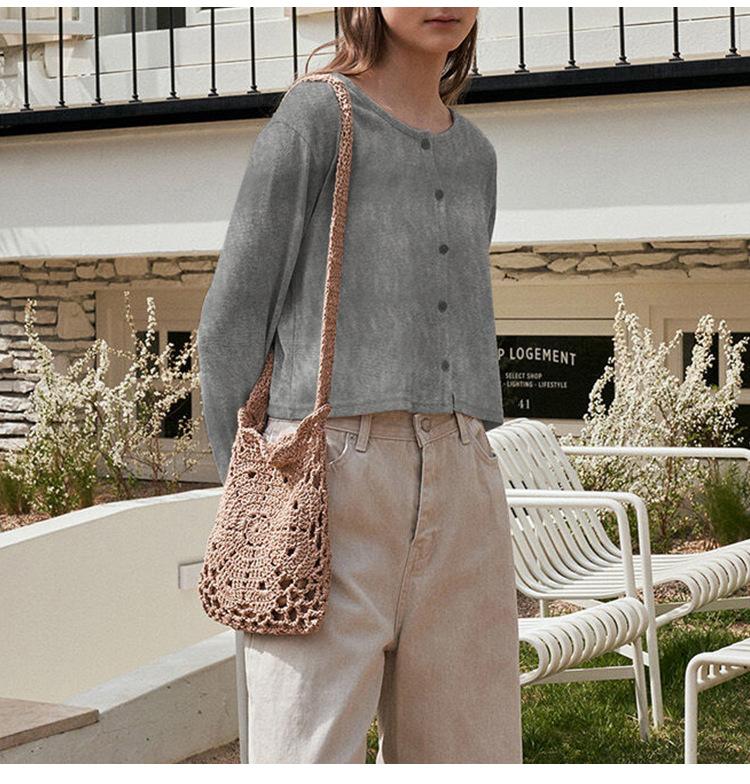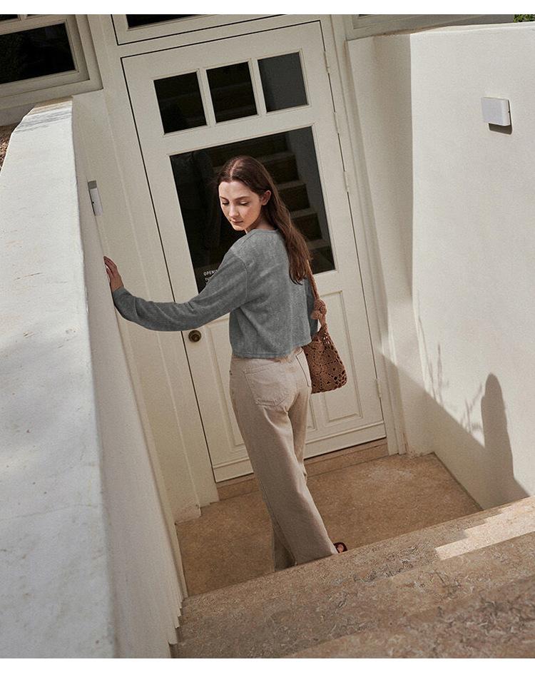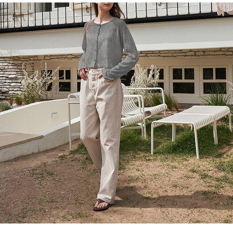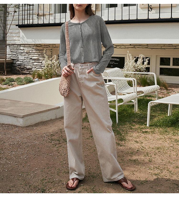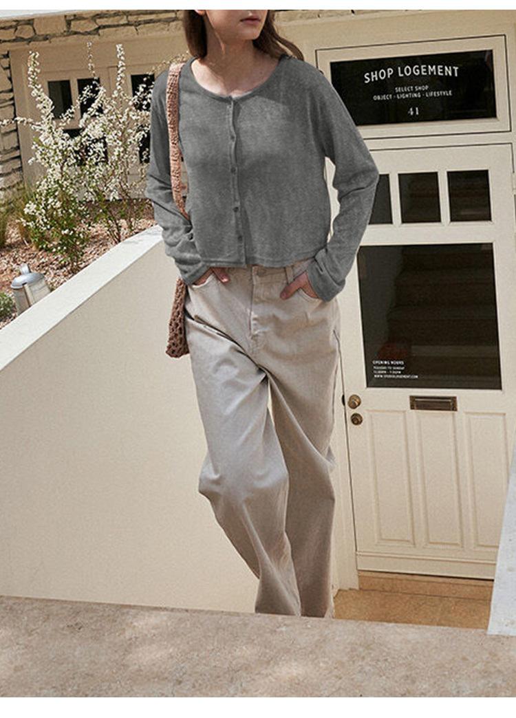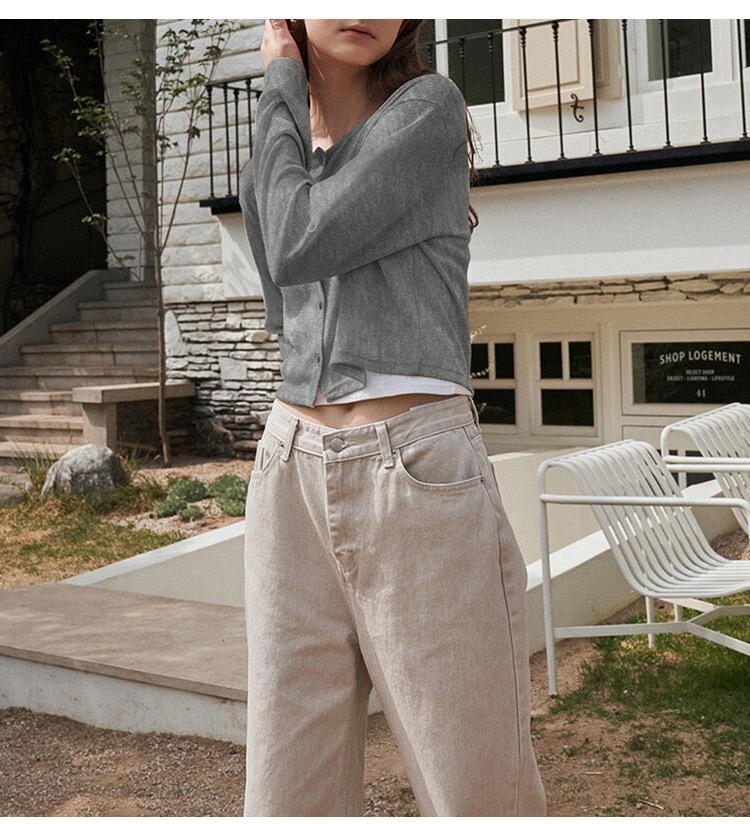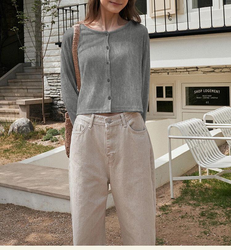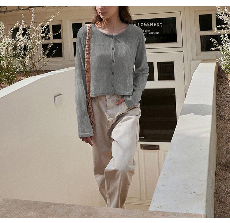 Cardigan Tricotado Outono 2025 Estilo Fashion e Versátil Elegante Feminino Emagrecedor Lã Gola Careca Estilo Coreano Top de Manga Longa