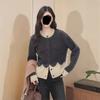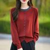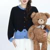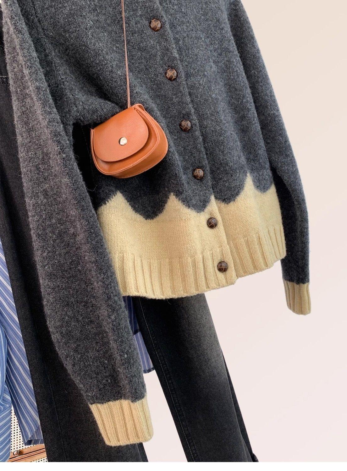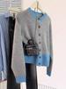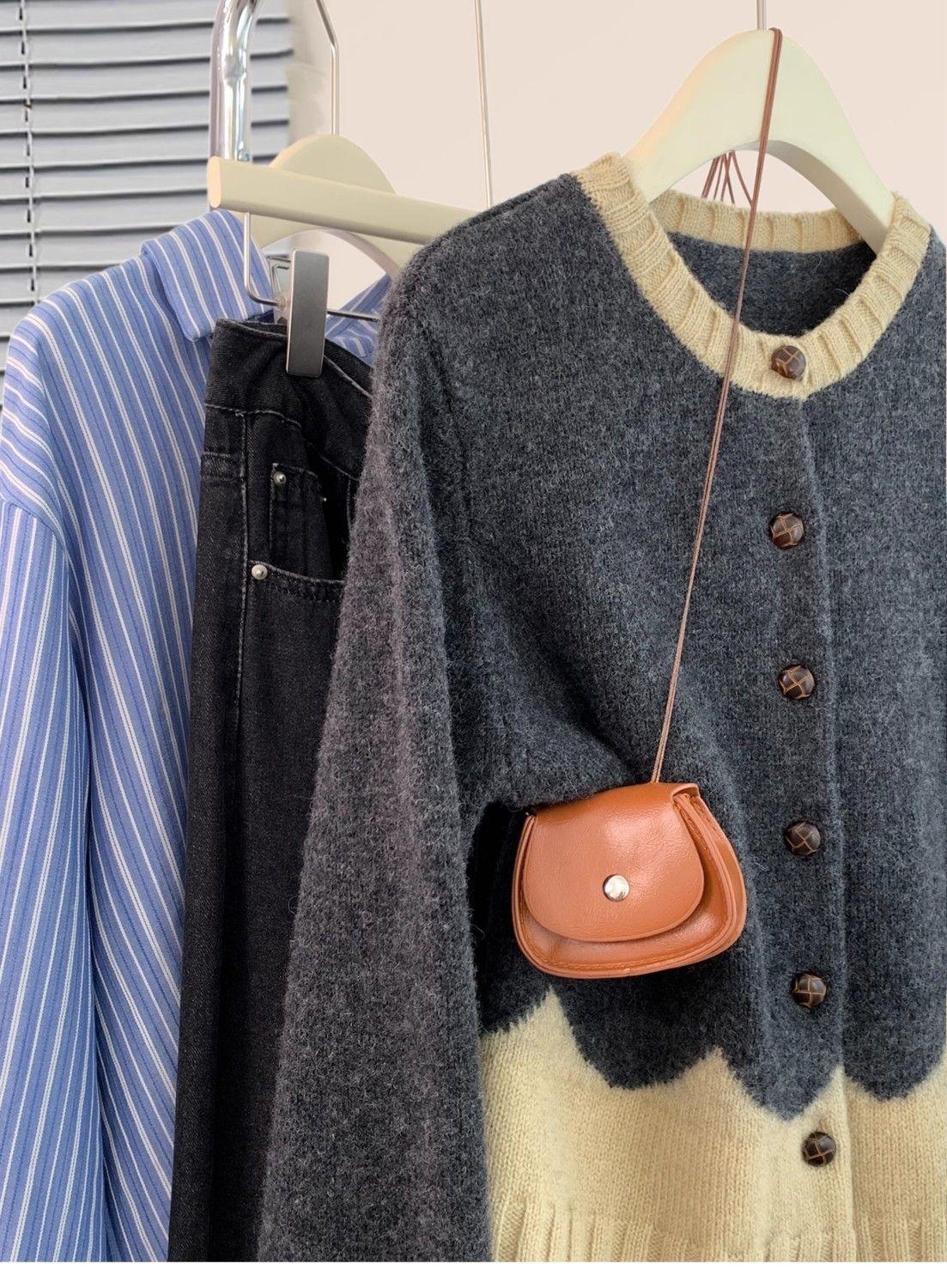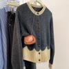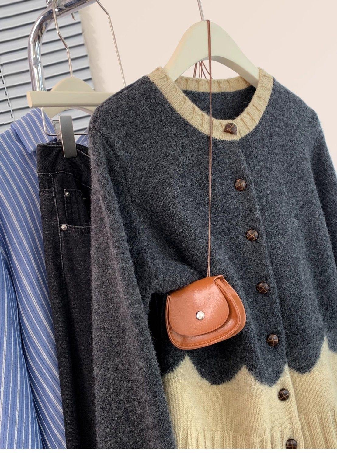 Outono Novo Cardigã Em Tricô Feminino Fashionable Com Gola Redonda Emagrecedor Ombro Reto Cardigã Patchwork Bloco de Cores High-End 2025