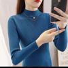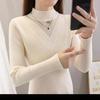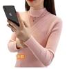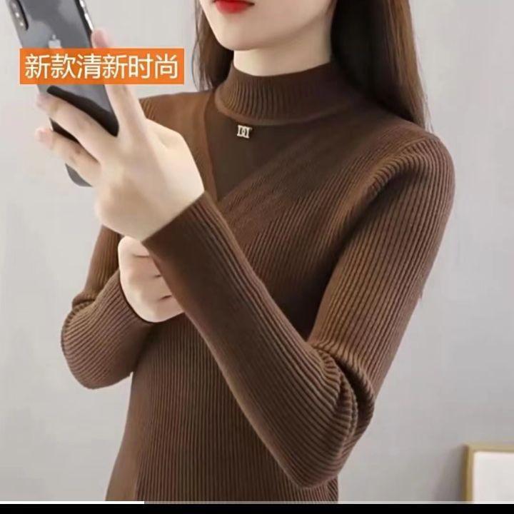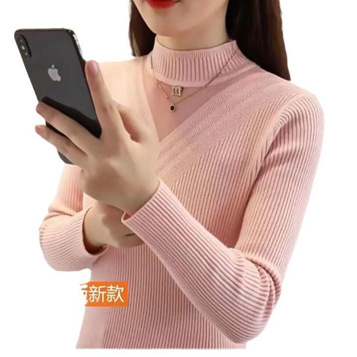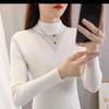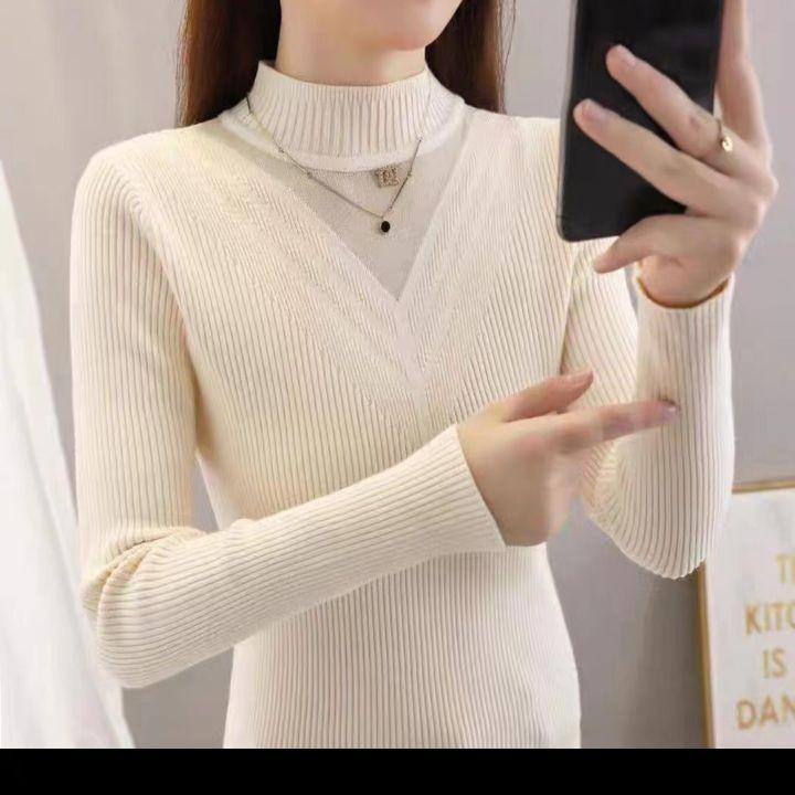 Blusas Femininas para Outono e Inverno, Novo Suéter Elegante de Renda com Gola Média Alta e Mangas Compridas, Camiseta Básica Tricotada da Moda