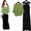Vestido Bodycon de Alça Espaguete Estilo Puro e Sexy + Cardigã de Manga Comprida Conjunto de Duas Peças Feminino Verão 2025 Garota Quente Emagrecimento Temperamento