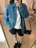 Jaqueta jeans curta retrô americana desfiada com gola alta para mulheres, novo estilo de início de outono, jaqueta top com ombro reto