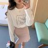 Camiseta feminina retrô de ombro reto branca de manga comprida estilo coreano solta novo outono precoce 2025 moderna emagrecedora blusa básica