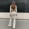 Estilo europeu e americano TEMU calças novas femininas moda cor sólida justas cintura alta micro boca de sino calças femininas base elástica casual calças compridas