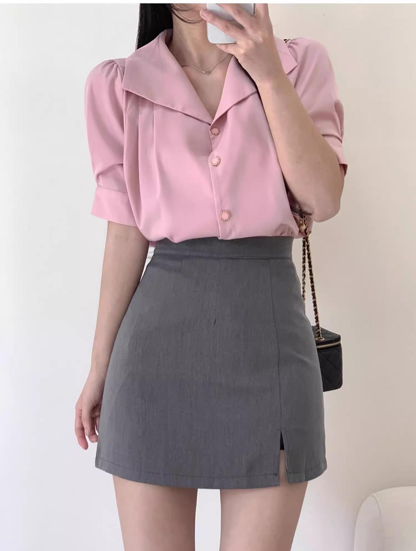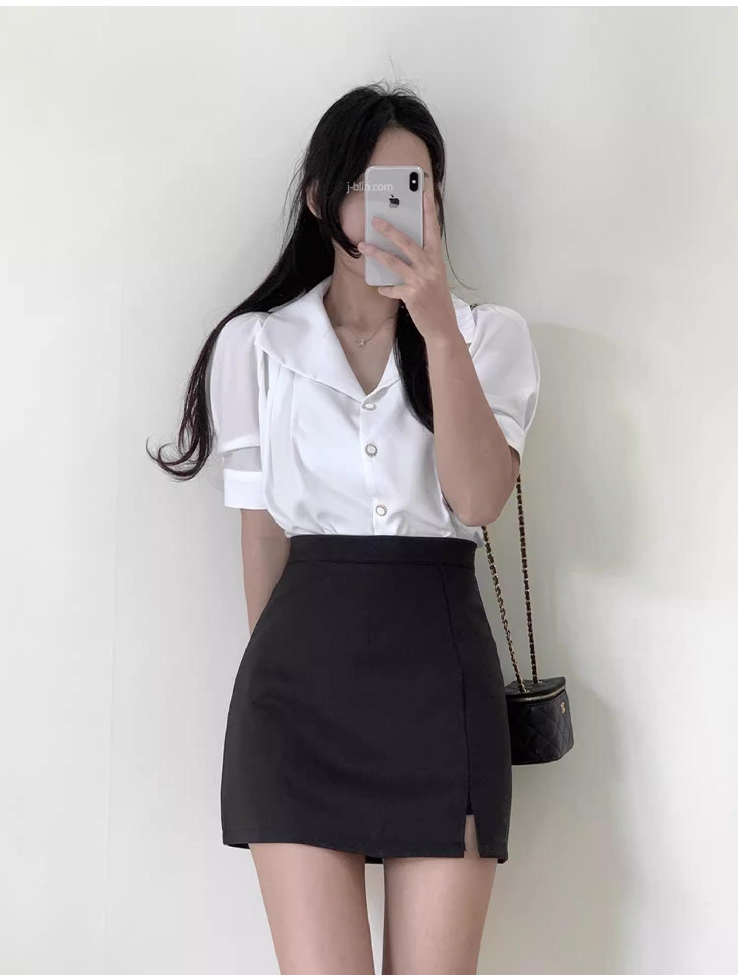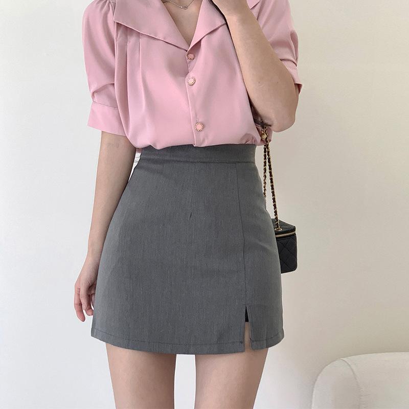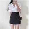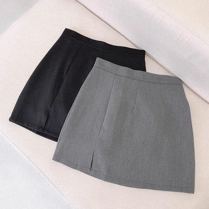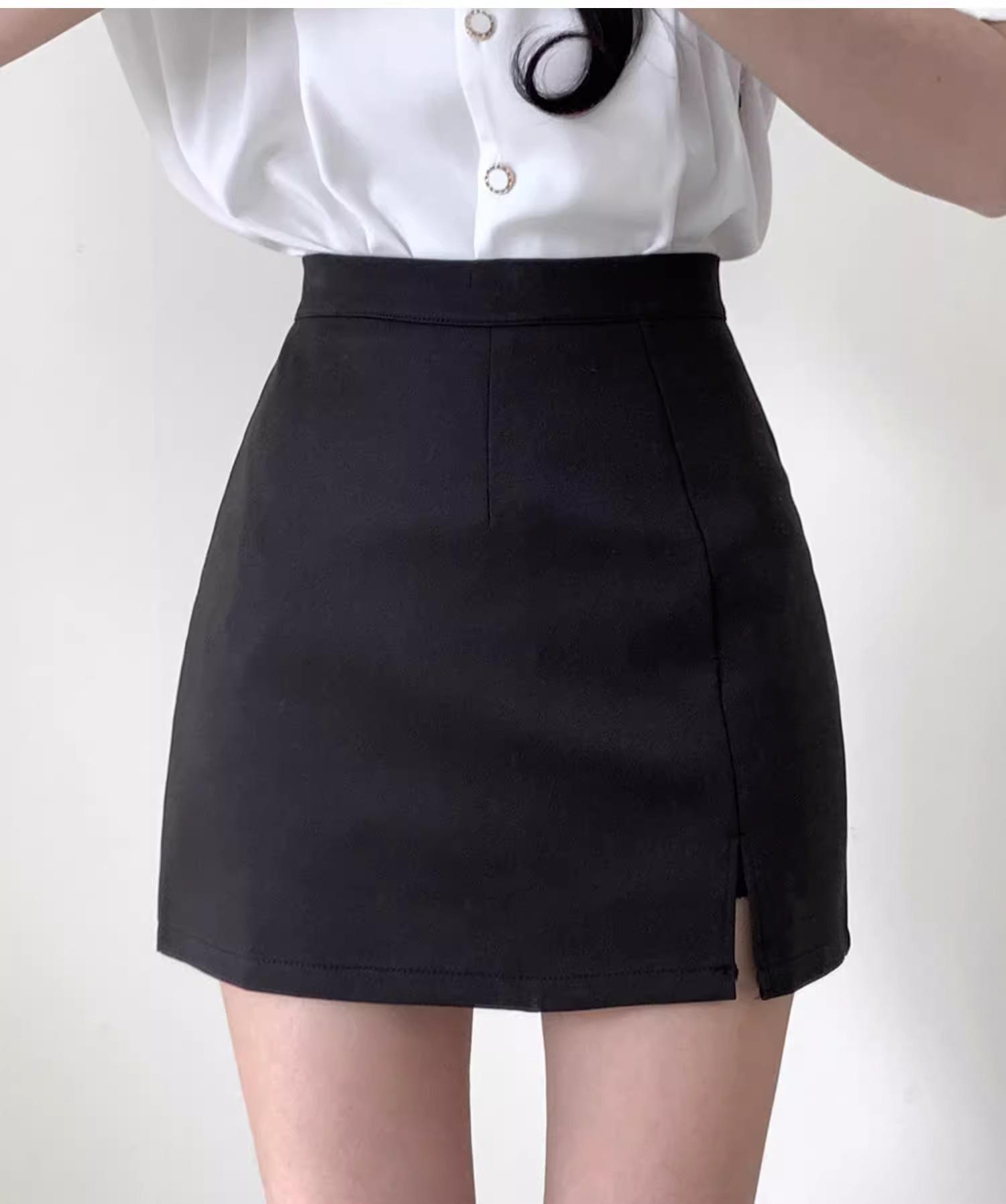 Saia Midi Preta de Fenda Cintura Alta Feminina 2025 Primavera/Outono Nova Saia Curta A-Line Conjunto Saia Bodycon Design de Verão