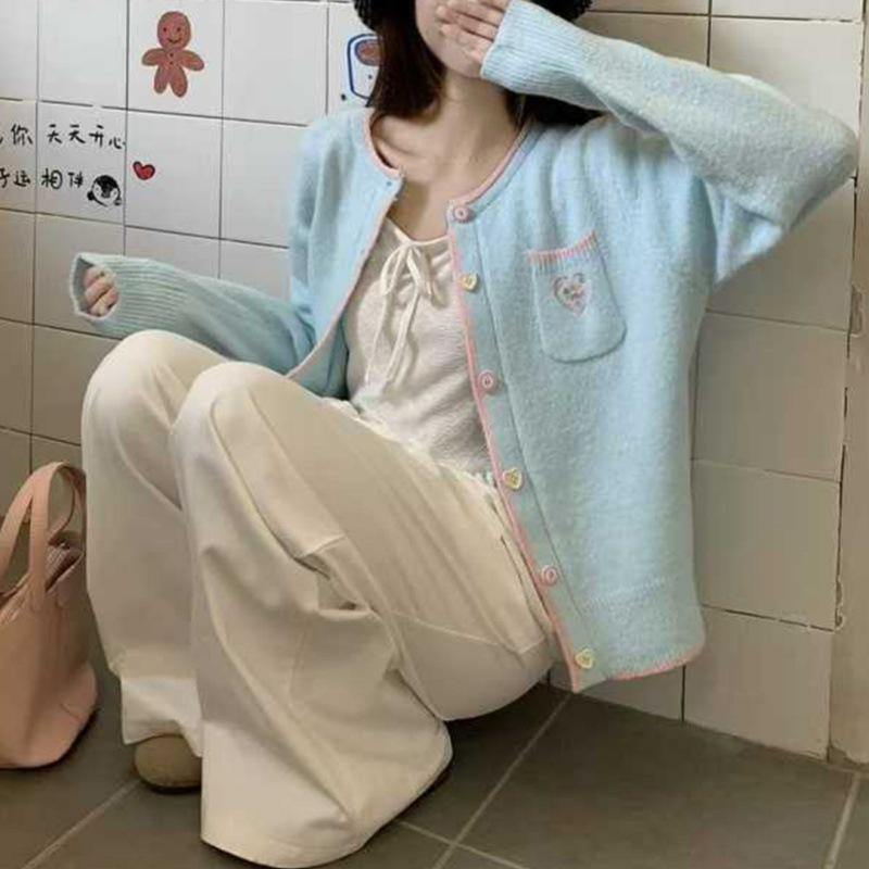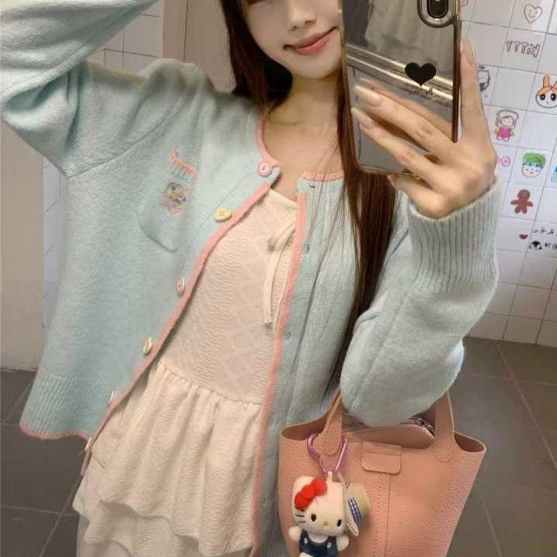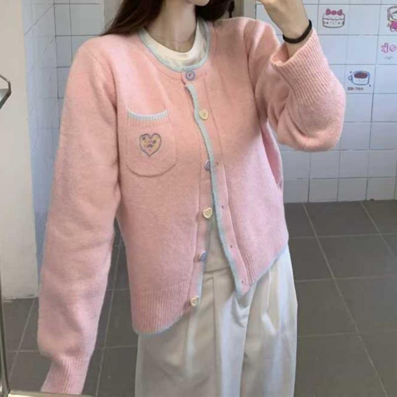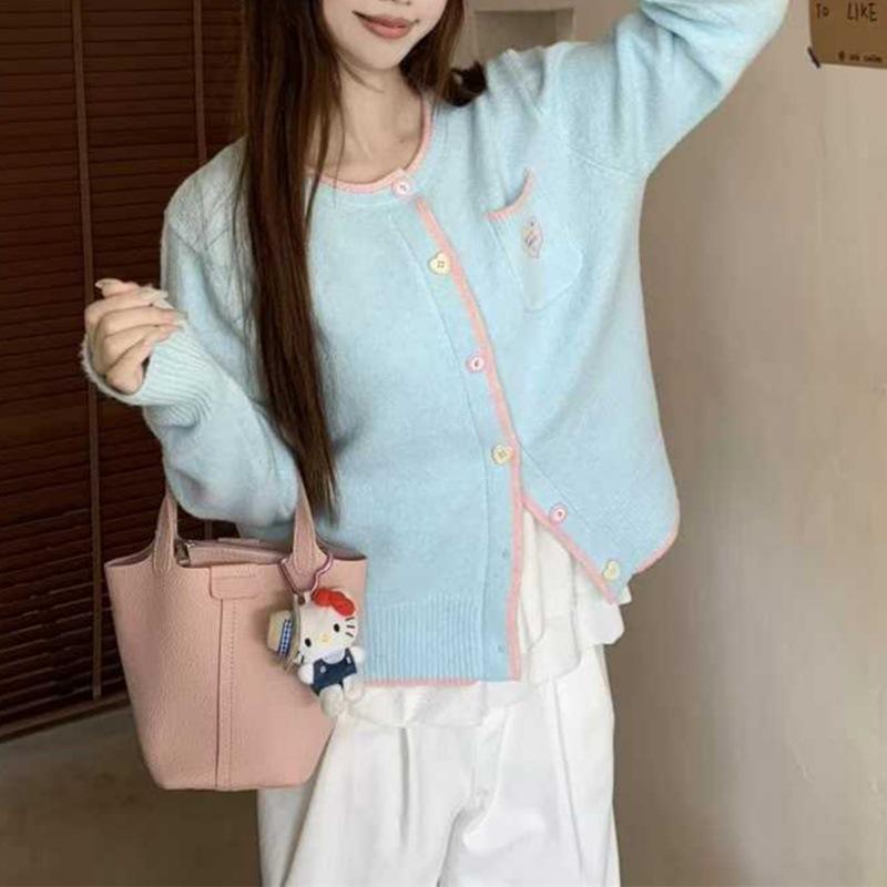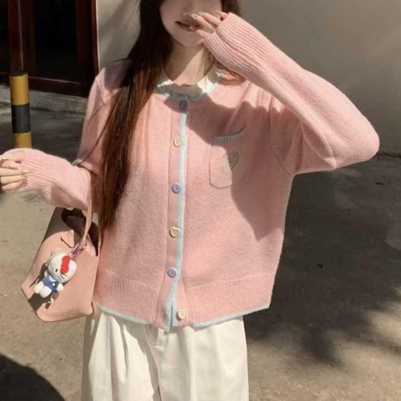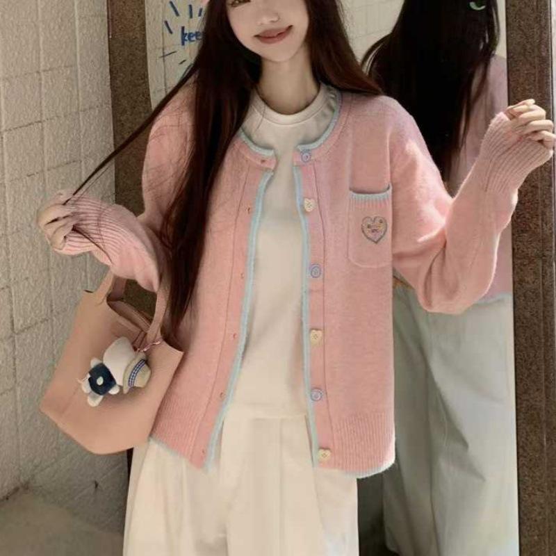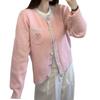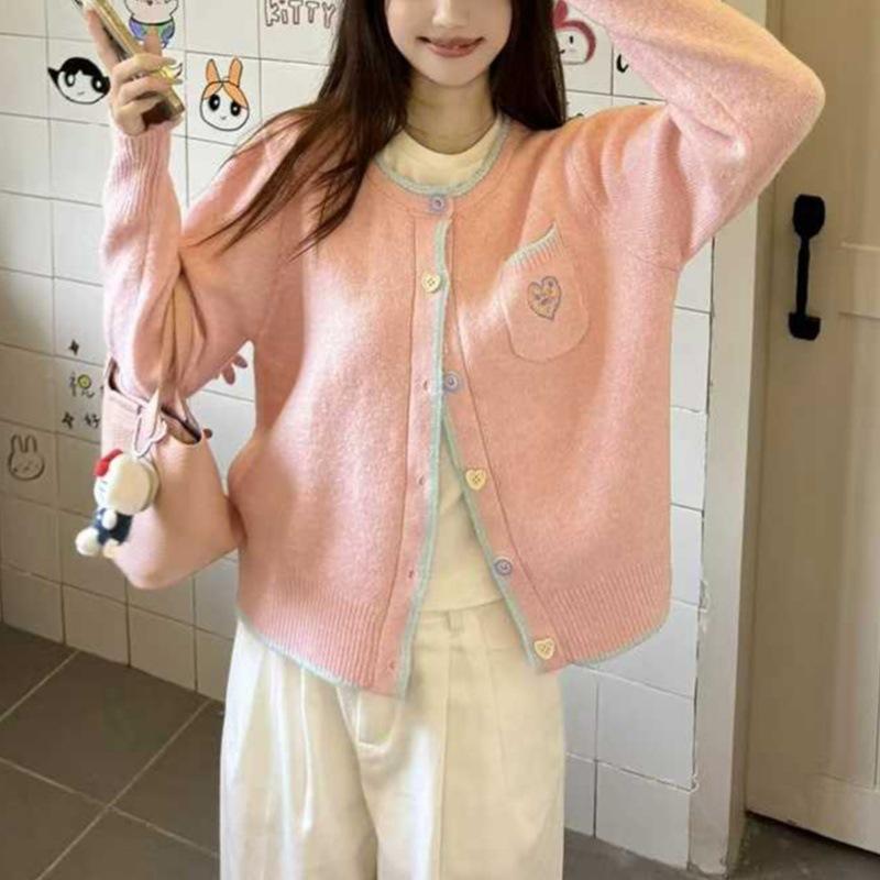 Suéter Tricotado de Manga Comprida Estilo Coreano Feminino 2025 Outono Novo Moda Dopamina Doce Cardigã Casaco Top