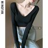2025 Novo Top Feminino com Senso de Design Estilo Europeu e Americano Tricotado Roupa Exterior Camiseta Básica Y2K Garota Hot Elástico Ombro Reto
