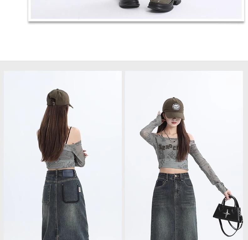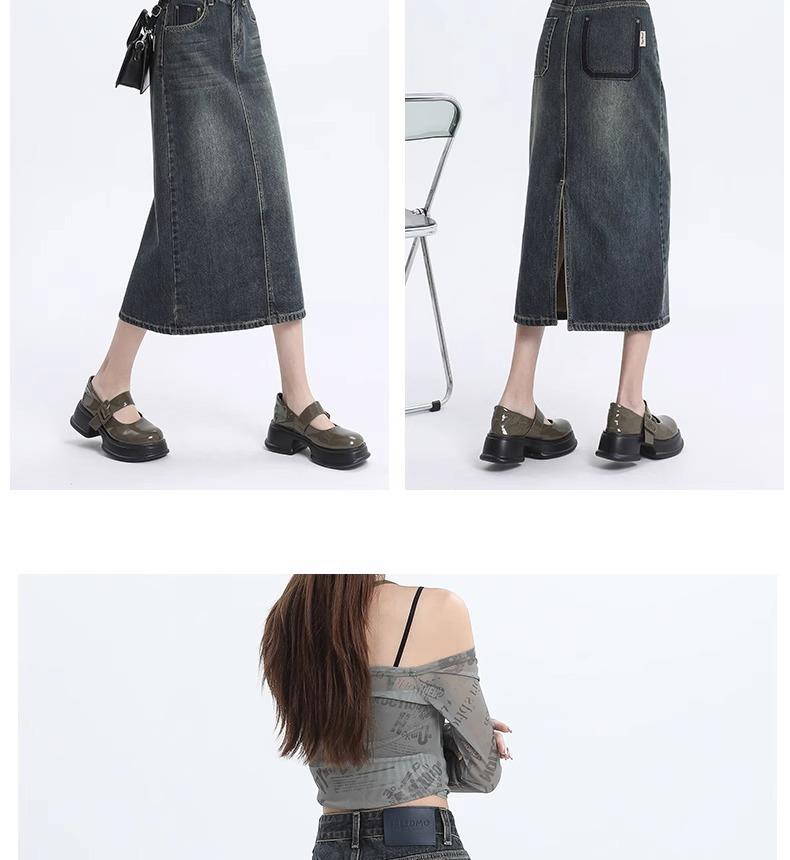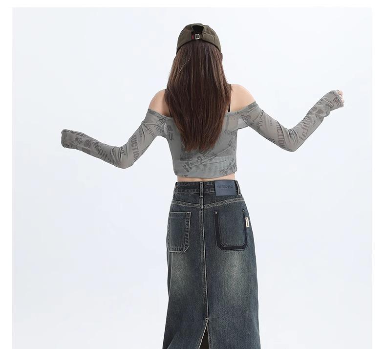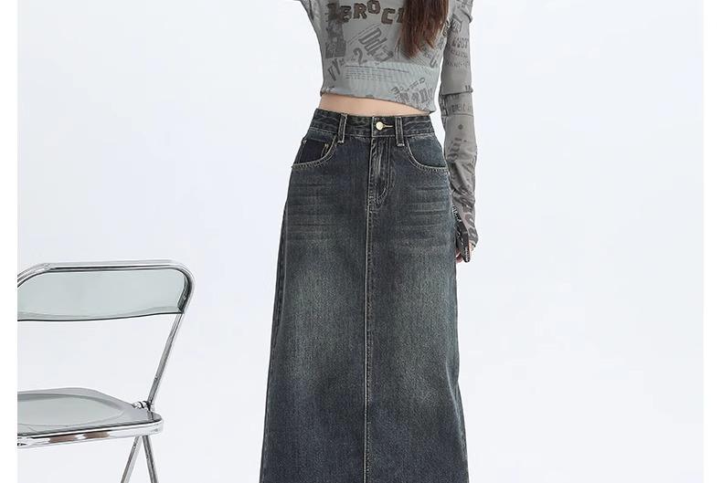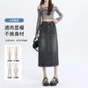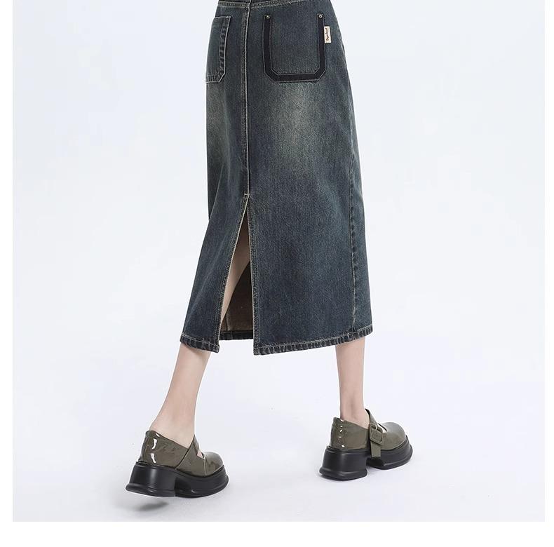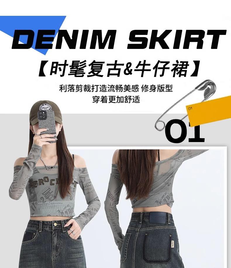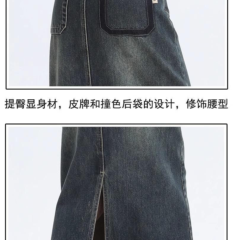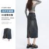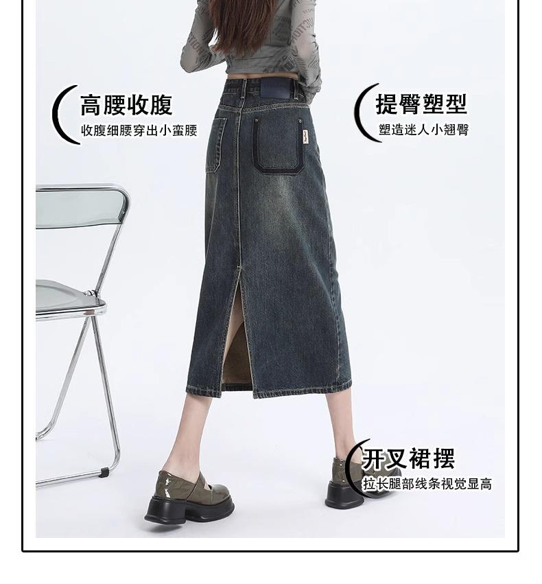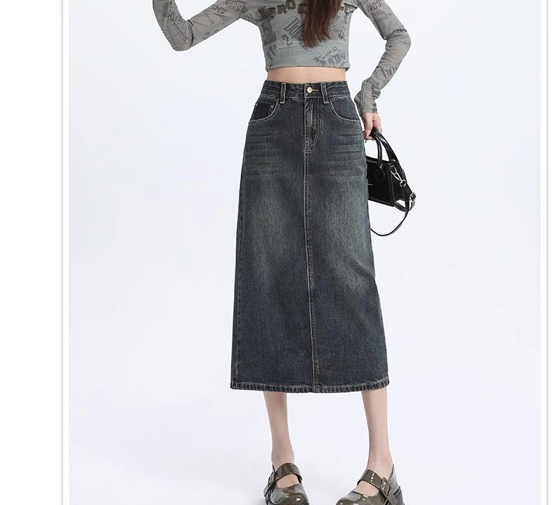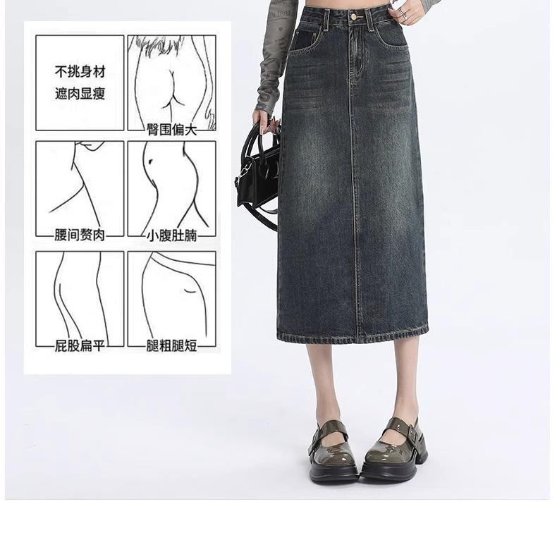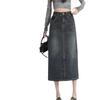 Saia Jeans Retrô com Fenda Feminina Verão 2024 Nova Slim Cintura Alta Linha A Midi Elegante Saia Quadril
