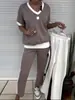 Moda Outono 2025 Europeia e Americana Transfronteiriça Nova Amazon Tops de Manga Curta com Decote V Calças Color Block Conjuntos Esportivos para Mulheres