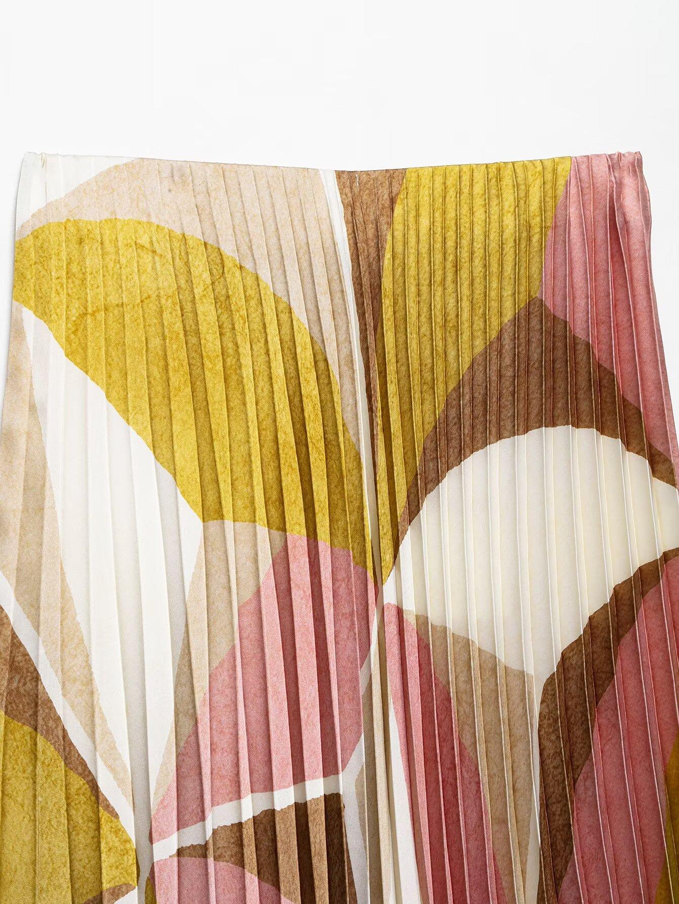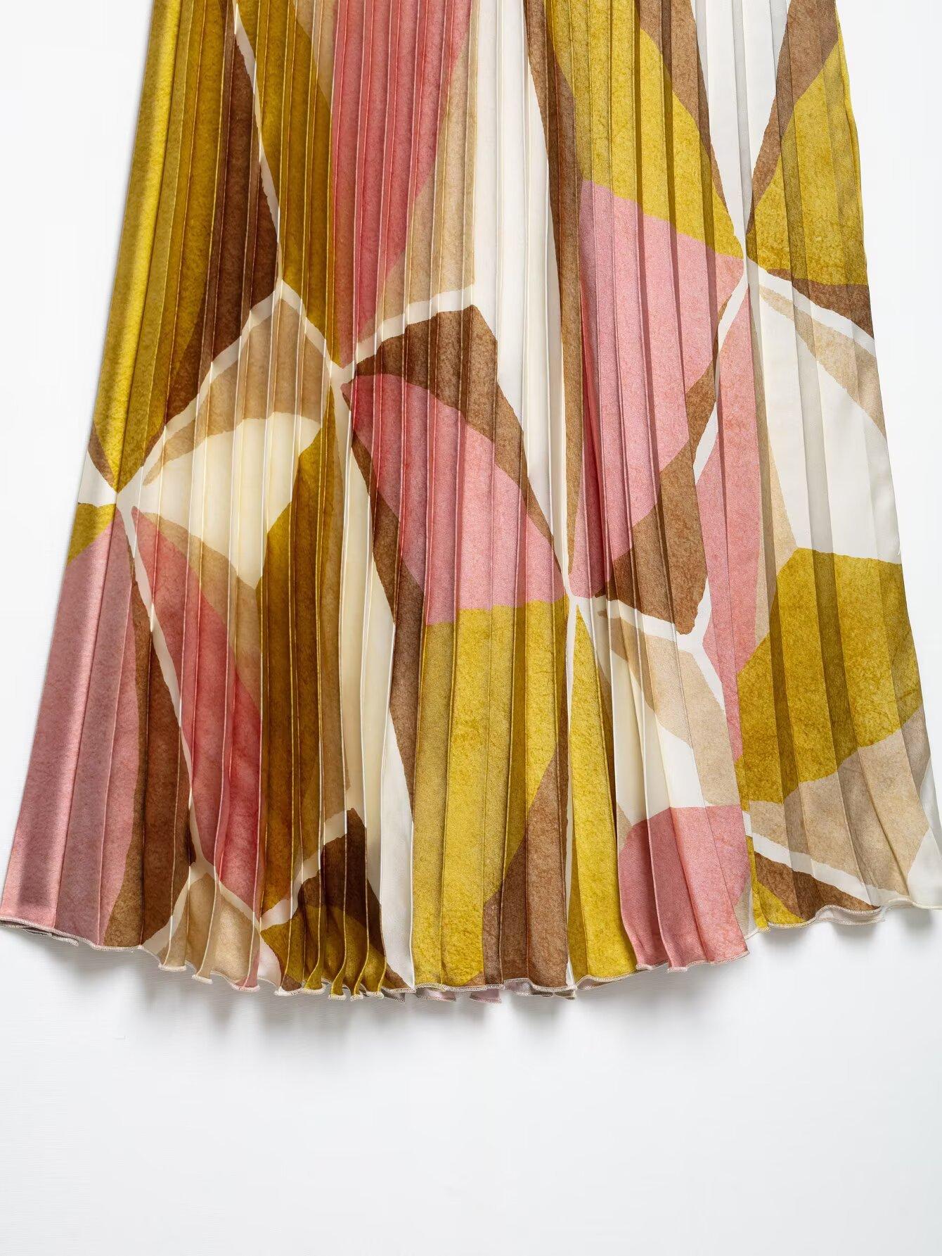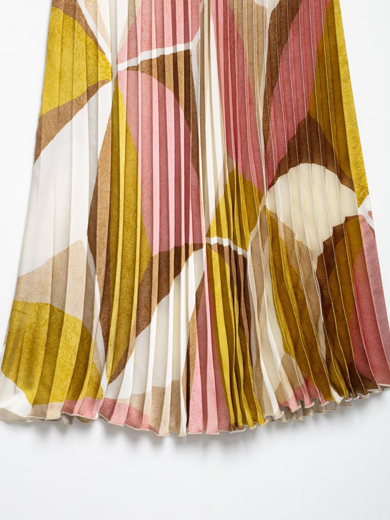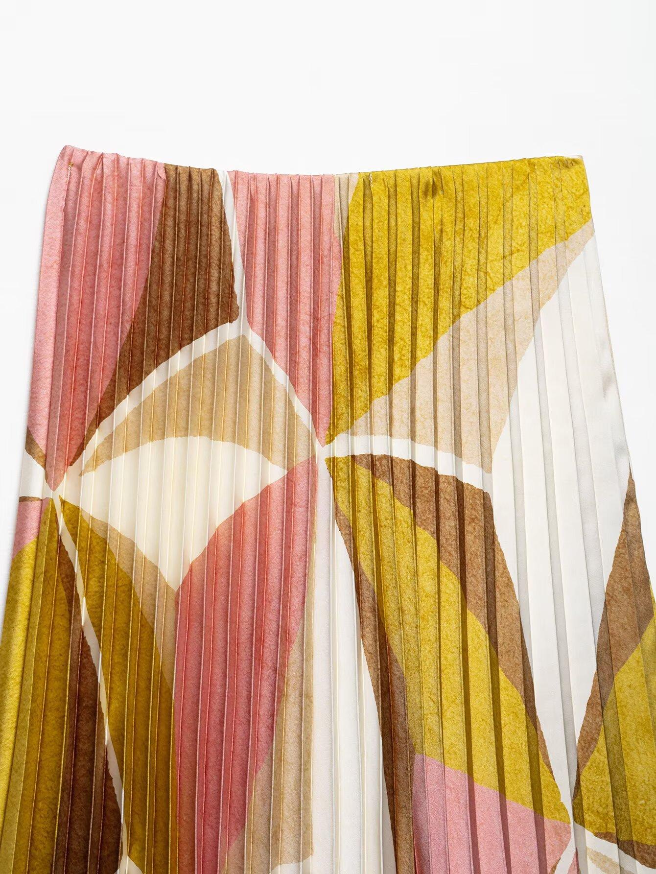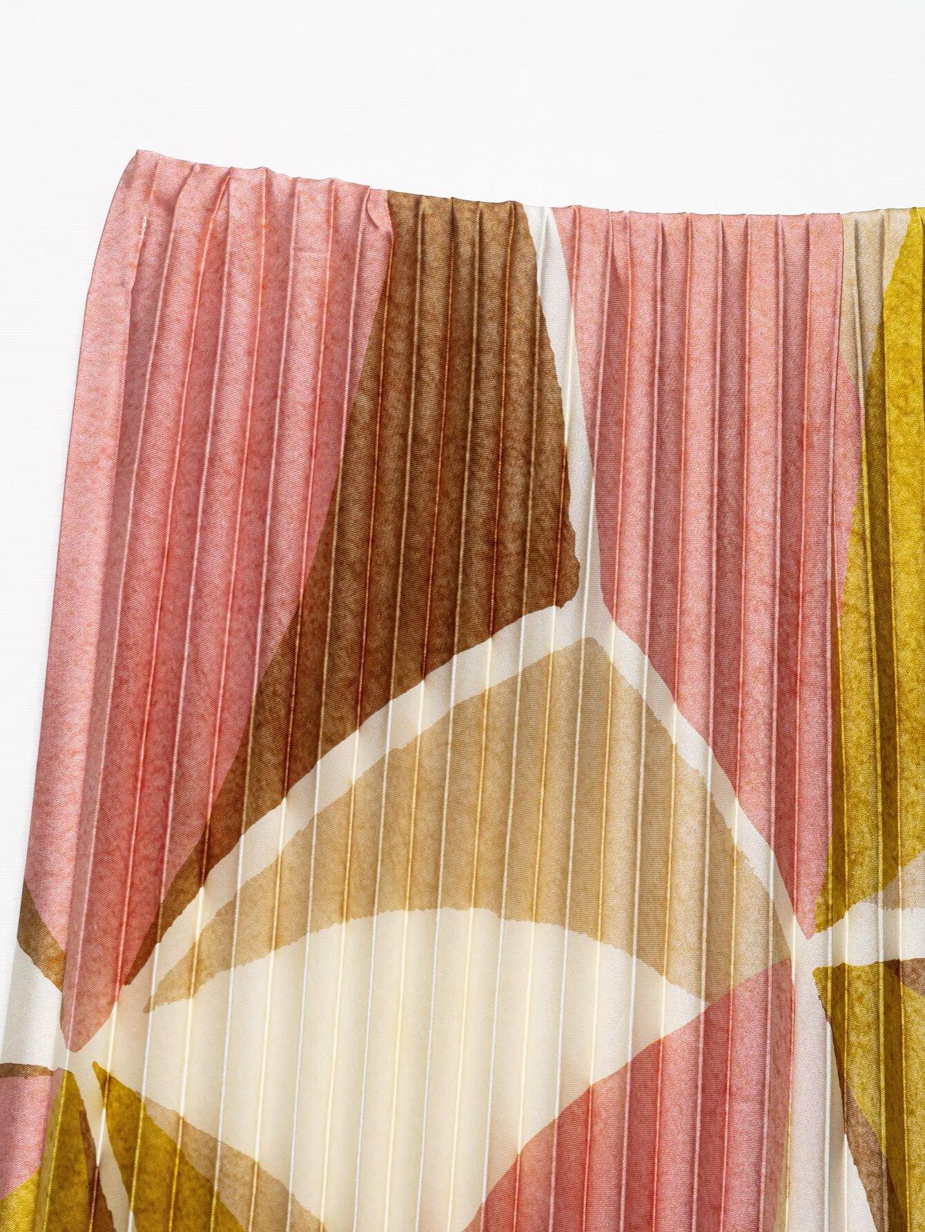 Atacado de Comércio Exterior Transfronteiriço 2025 Verão Novo Estilo Europeu e Americano Feminino Padrão Geométrico Colorido Estampado Saia Plissada Saia Midi