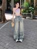 Xintang Fábrica de Jeans Direto Clássico Botão Duplo Retrô Solto Calças Perna Larga Caimento Arrastando Moda Novo