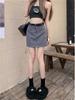Saia midi de terno cinza feminina 2025 outono nova cintura alta emagrecedora american hot girl evasê justa ao quadril estilo coreano minissaia